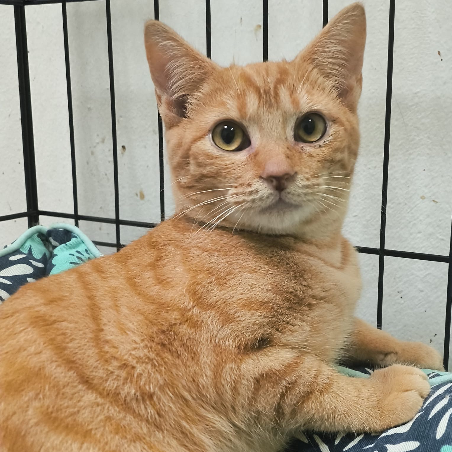 Estaba solito y asustado en un centro comercial. A pesar del miedo que tiene cuando le acaricias se derrite y es súper bueno. Necesita una casita donde le demuestren que puede confiar en los humanos