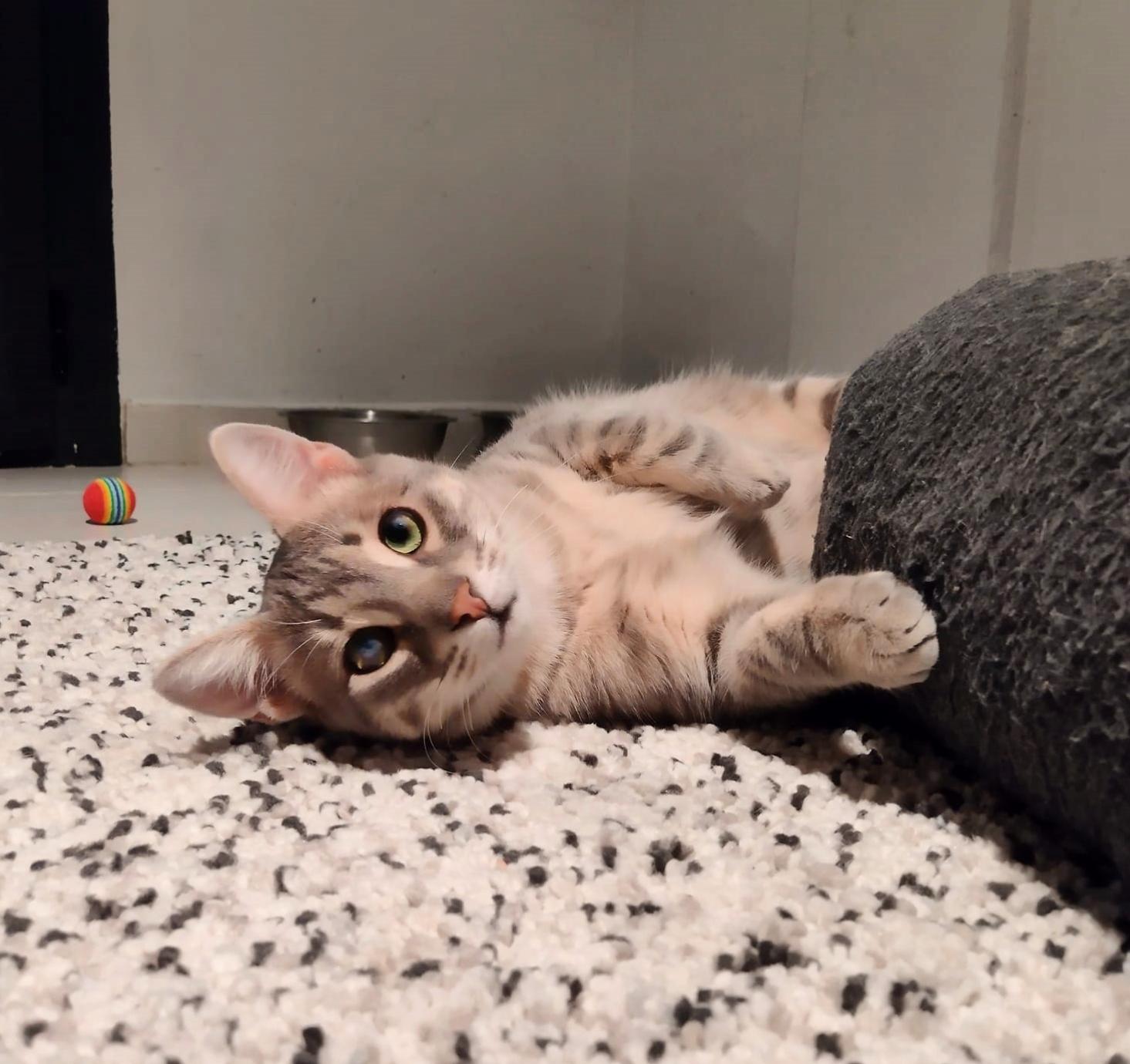 Conoce a Barti! Un Gatito Valiente en Busca de un Hogar Lleno de Amor. Barti es un hermoso gatito atigrado, con un manto realmente impresionante que promete convertirse en un gato grande y majestuoso. Pero detrás de su innegable belleza se esconde una historia conmovedora que te tocará el corazón. Barti llegó de Ceuta con sus hermanitos, después de haber sido encontrado muy pequeño y desorientado en un parque. Su confusión no era casual: Barti tiene problemas de visión que lo hacen ver el mundo de una manera distinta. Con un ojito, Barti ve como si una nube cubriera su vista, y con el otro solo puede ver por los lados. A pesar de estos desafíos, este valiente gatito ha demostrado una increíble capacidad para adaptarse a cualquier entorno, manejándose con gran habilidad. Sin embargo, debido a su limitada visión, le cuesta reconocer a las personas y, por lo mismo, confiar en ellas. La vida no ha sido fácil para Barti, y al principio, fue todo un reto integrarlo con otros gatitos. Pero con tiempo y paciencia, Barti ha empezado a jugar y comportarse como un gatito normal, demostrando que su espíritu es tan fuerte como su corazón. Barti necesita un hogar donde le tengan paciencia y le ofrezcan el amor que tanto merece. Es un gatito que, a pesar de ser un poco gruñón al principio, es puro amor en su esencia. Barti ha sido un luchador desde el día en que fue rescatado, y ahora, solo necesita una familia que lo acepte tal como es, que vea más allá de sus problemas de visión y le brinde la oportunidad de vivir la vida plena que se merece. Estamos buscándole un hogar amoroso, un lugar donde pueda recibir todos los cuidados y el cariño que merece. Barti ya cuenta con el protocolo veterinario completo: desparasitación, vacunación completa, test de inmunodeficiencia y leucemia, chip y cartilla identificativa. Así que está listo para llenar tu hogar de amor. Si estás buscando un compañero lleno de vitalidad y ternura, Barti es el gatito perfecto para ti. Si estás buscando un compañero fiel y estás dispuesto a darle a Barti la oportunidad que tanto necesita, él te recompensará con su amor incondicional. Adopta a Barti y dale la casita amorosa que siempre ha soñado.