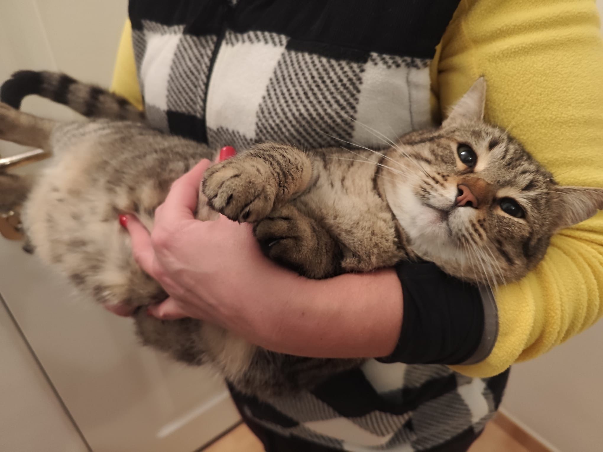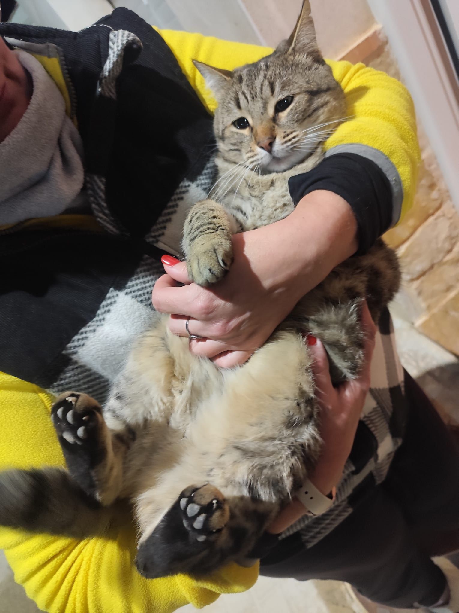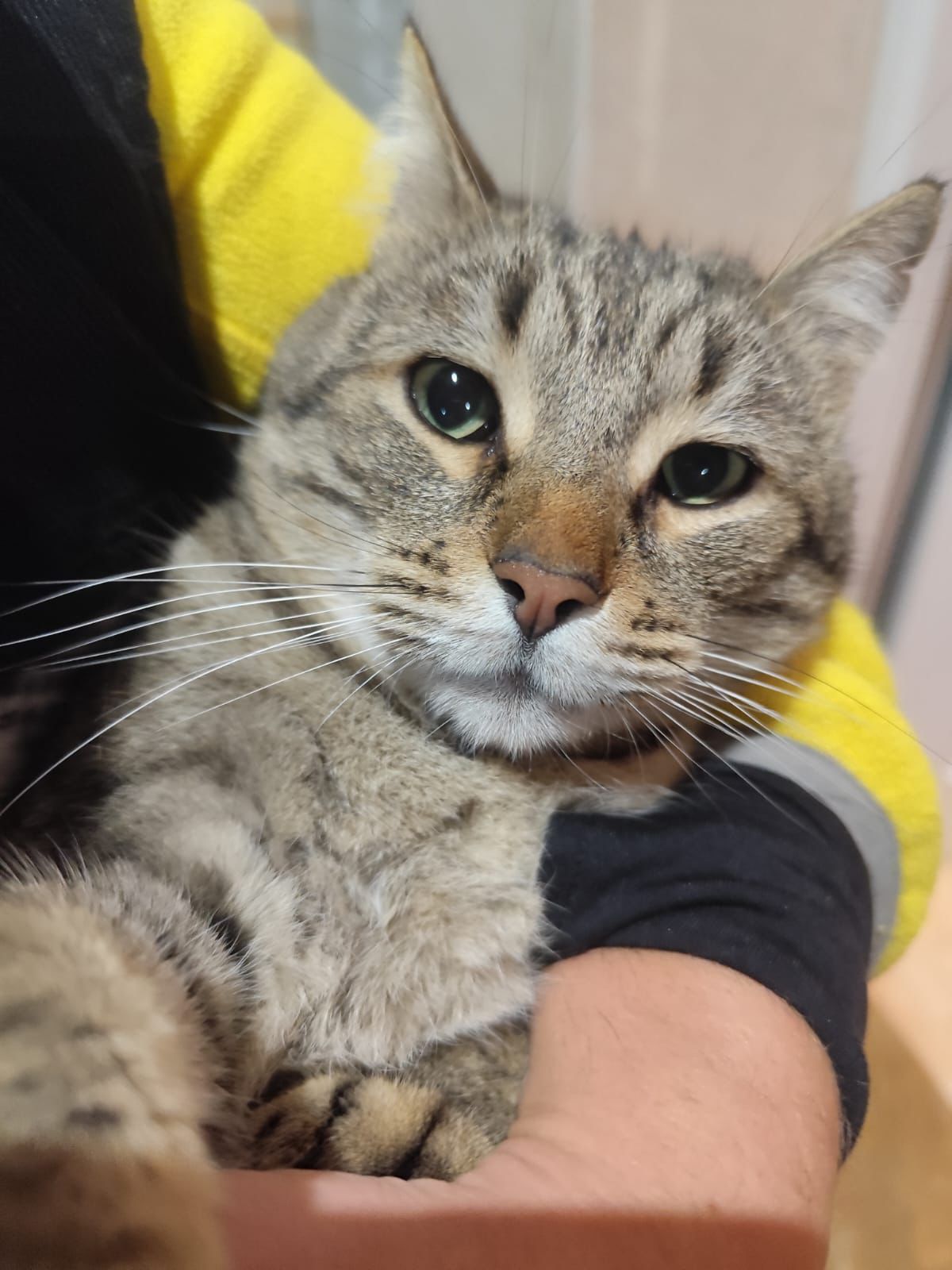 Chico es un gatito que apareció caquéctico en la acera de una conocida nuestra... desde hace meses que lo alimenta pero vive en su rellano... esperando cada días que se abra la puerta y salga ella... Es muy triste ver como un gatito de solo un año no tiene hogar mereciéndoselo tanto... Preferimos que sea hijo único, al menos al principio, ya que otros gatitos de la calle no le han tratado muy bien y les tiene algo de miedo..