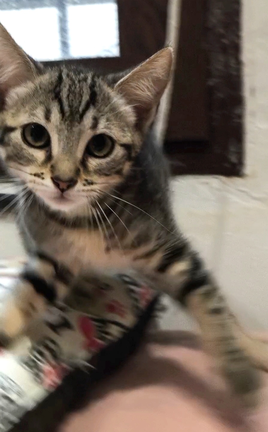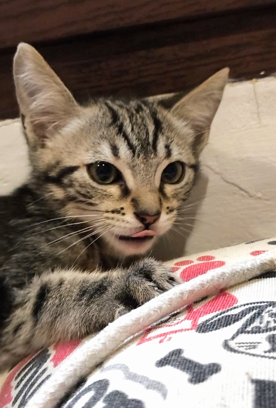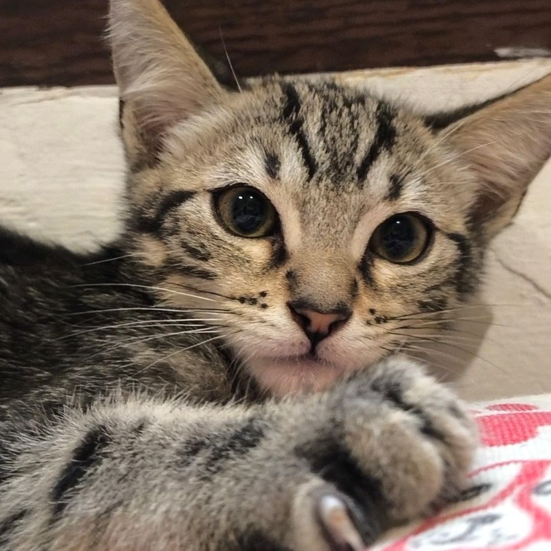Gohan es un gatito gris atigrado. Le encanta jugar y explotar. Al principio puede ser precavido pero con un par de mimos se le pasa