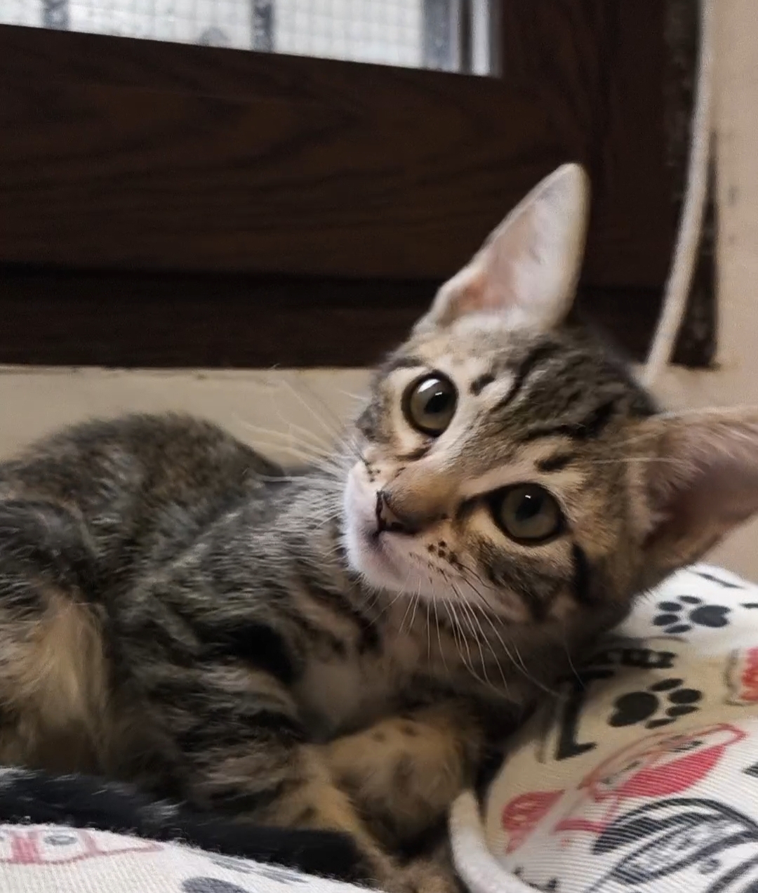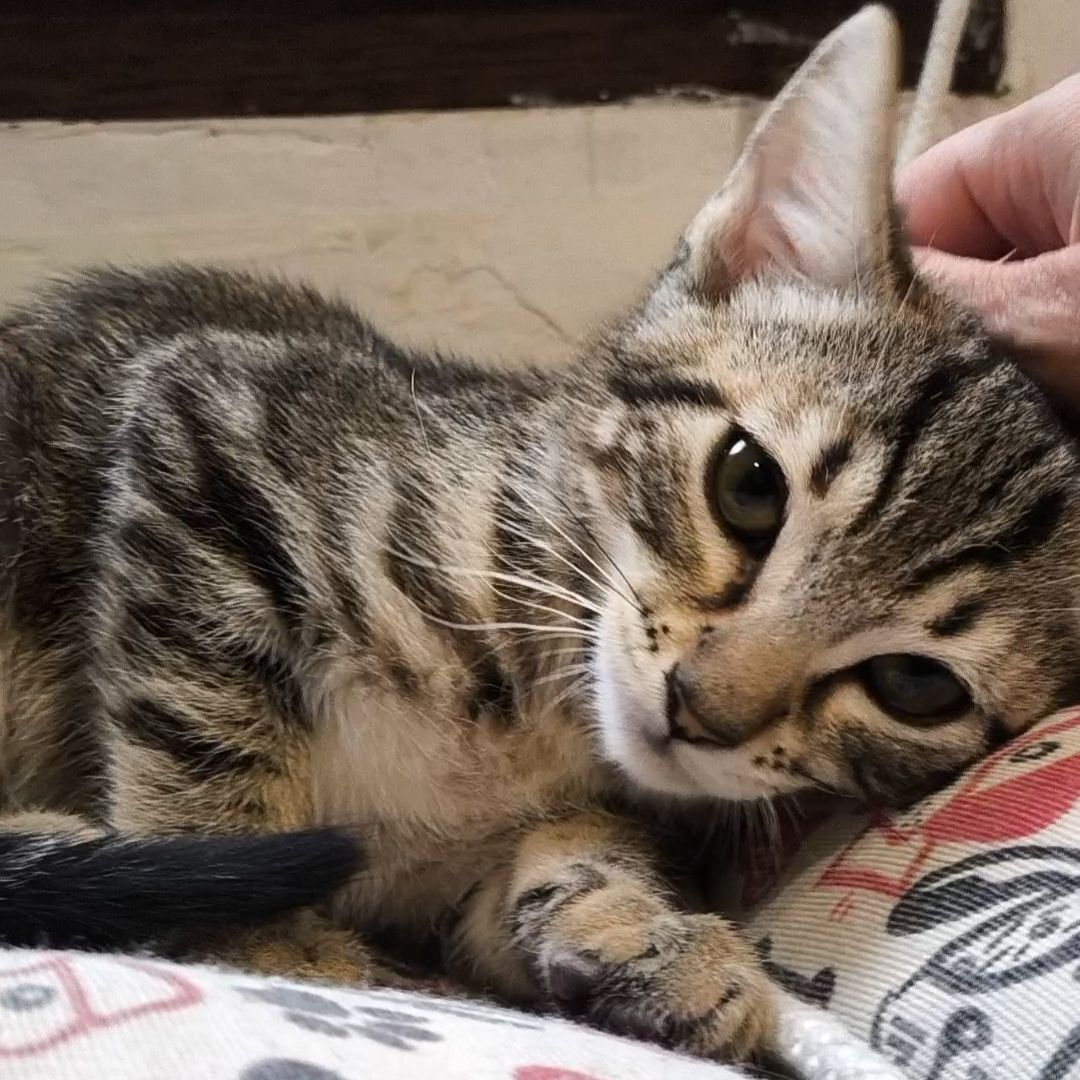 Goku es un gatito gris atigrado muy juguetón. Al principio puede mostrar desconfianza pero con un par de mimos se le pasa.