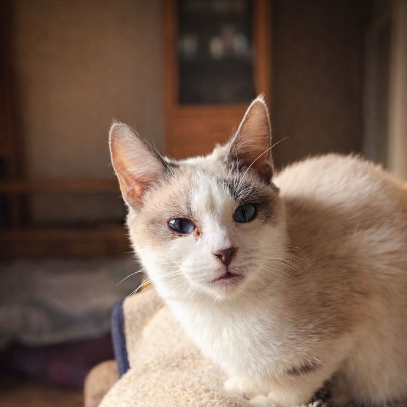 Gatito joven, cariñoso y juguetón, de pelaje siamés, le encantan las caricias y los mimos.