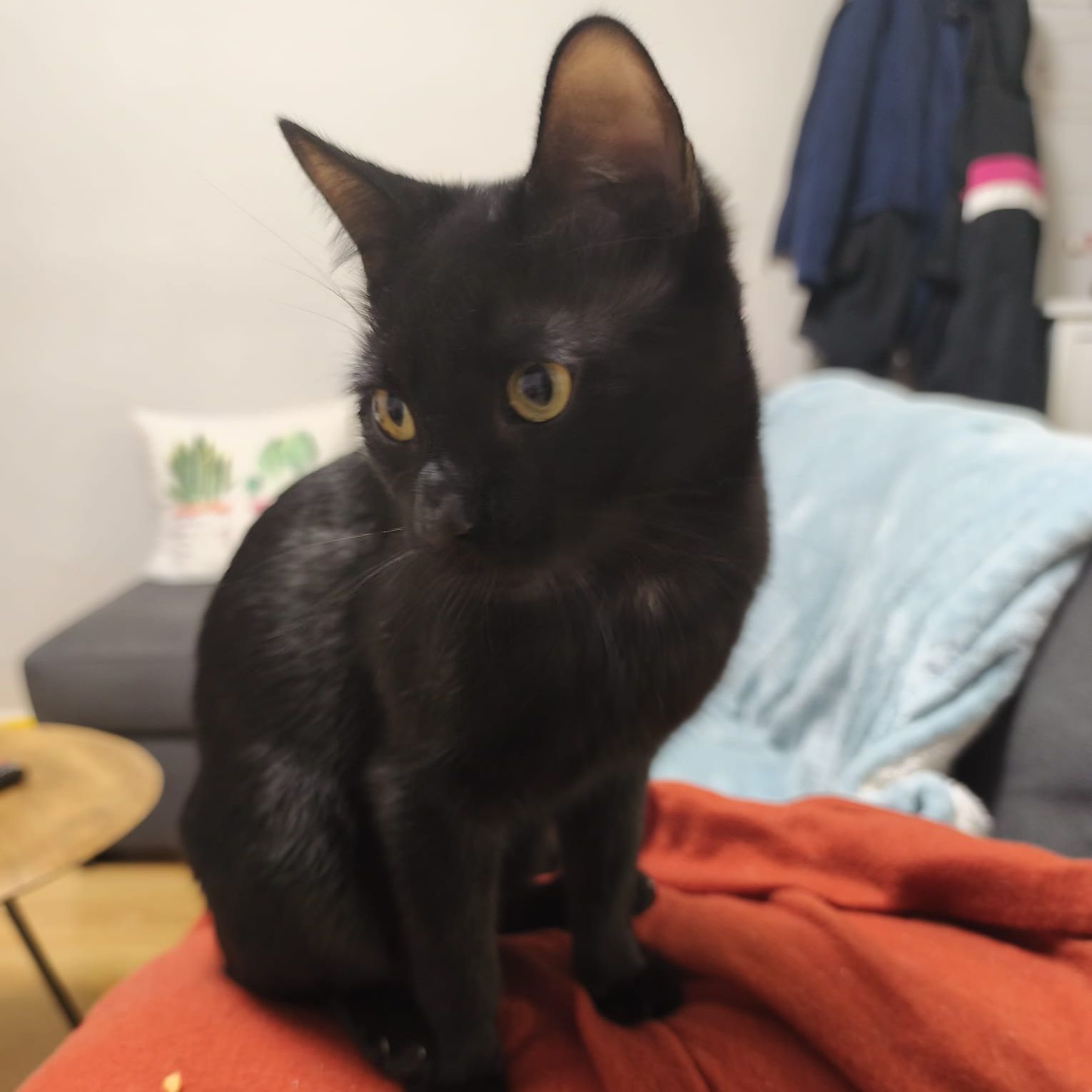 Gatito bebé, cariñoso y juguetón que recuerda a una minipanterita.