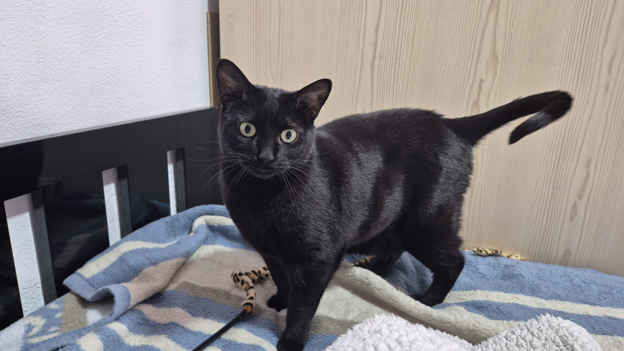 Pixel fue encontrado junto a su hermano Bug en el aparcamiento de un supermercado de Madrid. Eran claramente gatos caseros, abandonados en un entorno muy peligroso para ellos. Gracias al aviso por redes, una compañera acudió rápidamente y pudo rescatarlos a tiempo. La calle no era lugar para dos gatitos tan confiados y acostumbrados al contacto humano. Al llegar a casa de acogida se mostraba un poco asustado, pero ese miedo duró muy poco. En cuanto se sintió a salvo, Pixel empezó a demostrar quién es realmente: un gato increíblemente cariñoso y cercano.