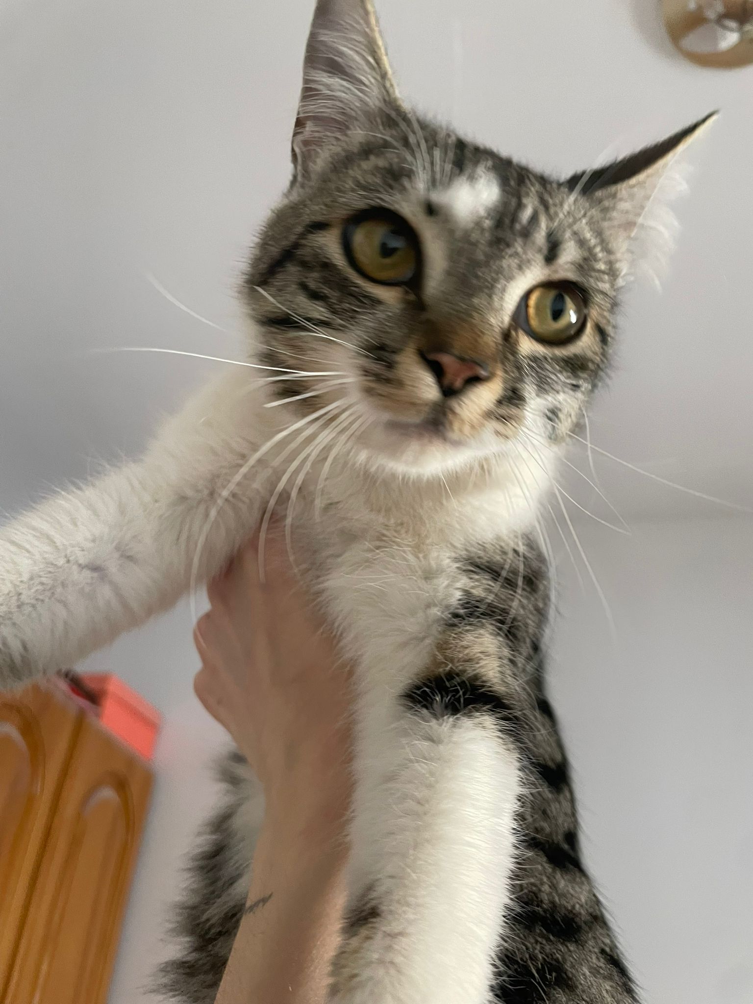 Pulgarcito es el gatito más simpático y cariñoso que te vas a encontrar jamás. Apareció en la puerta de un restaurante solito pidiendo comida a la gente, al lado de una carretera, perseguía a las personas cuando salían de allí... Merece un hogar donde poder repartir todo el amor que tiene dentro <3 Se entrega vacunado, desparasitado, con microchip y pasaporte. Puede viajar!
