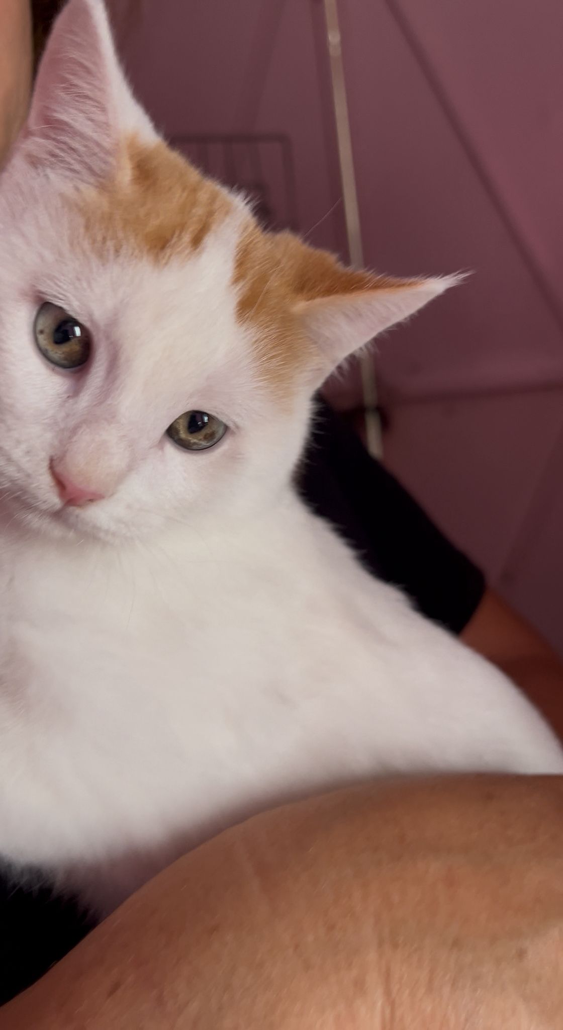 Amorosa tricolor. Le encanta jugar con todo. Muy simpática y sociable, como su hermano.