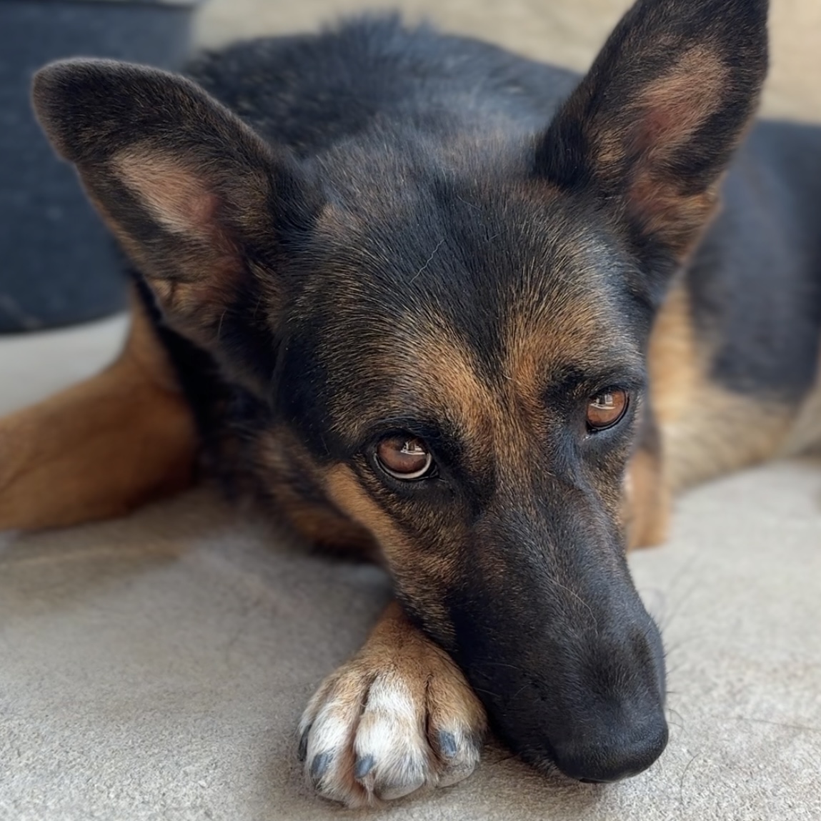 Sacada de la "casa de los horrores" de Galicia donde vivía con Simona. Las tenían atadas la mayor parte del tiempo y eran maltratadas por la que decía ser su famillia. Se denunció y fueron decomisadas por la Guardia Civil y llevadas a una perrera municipal.