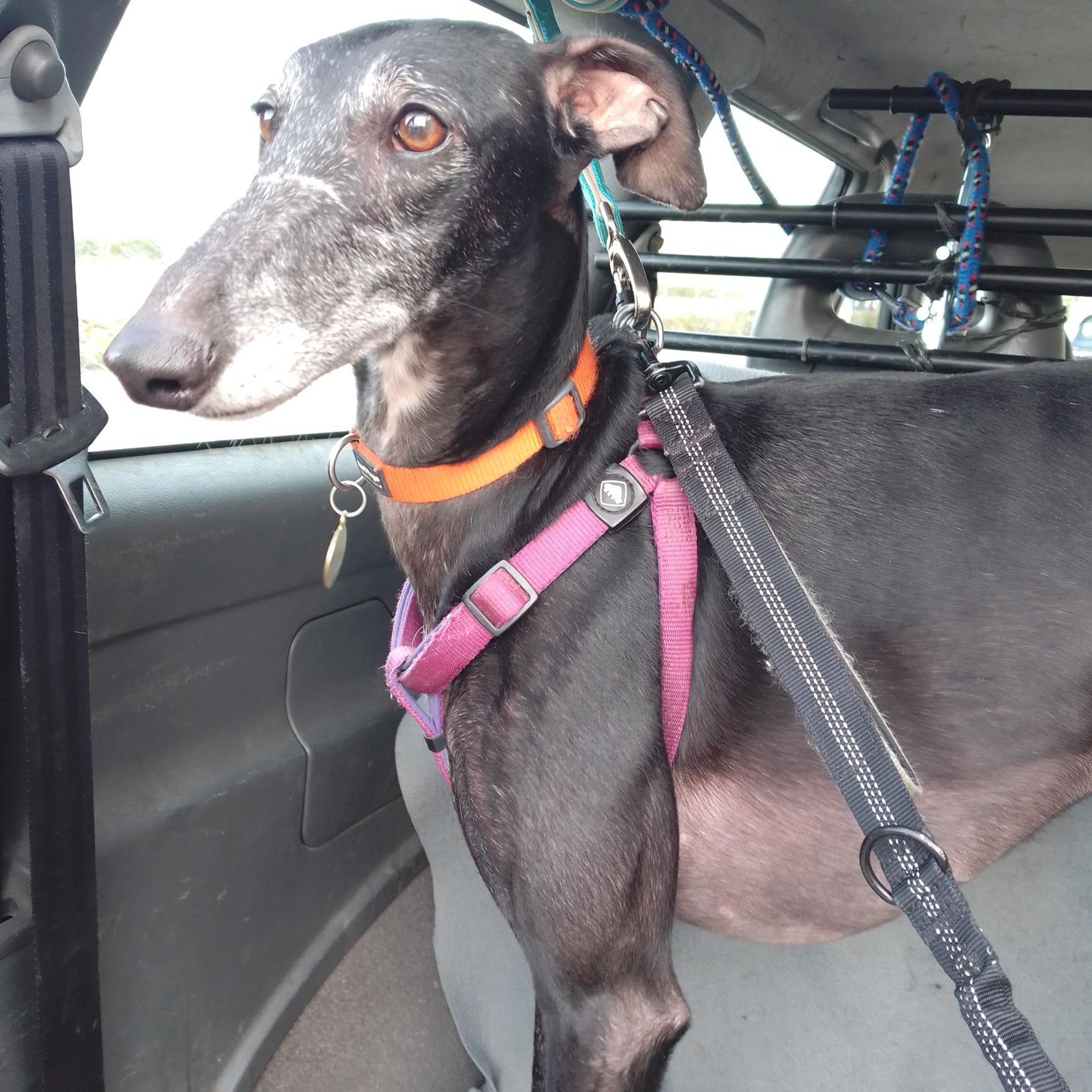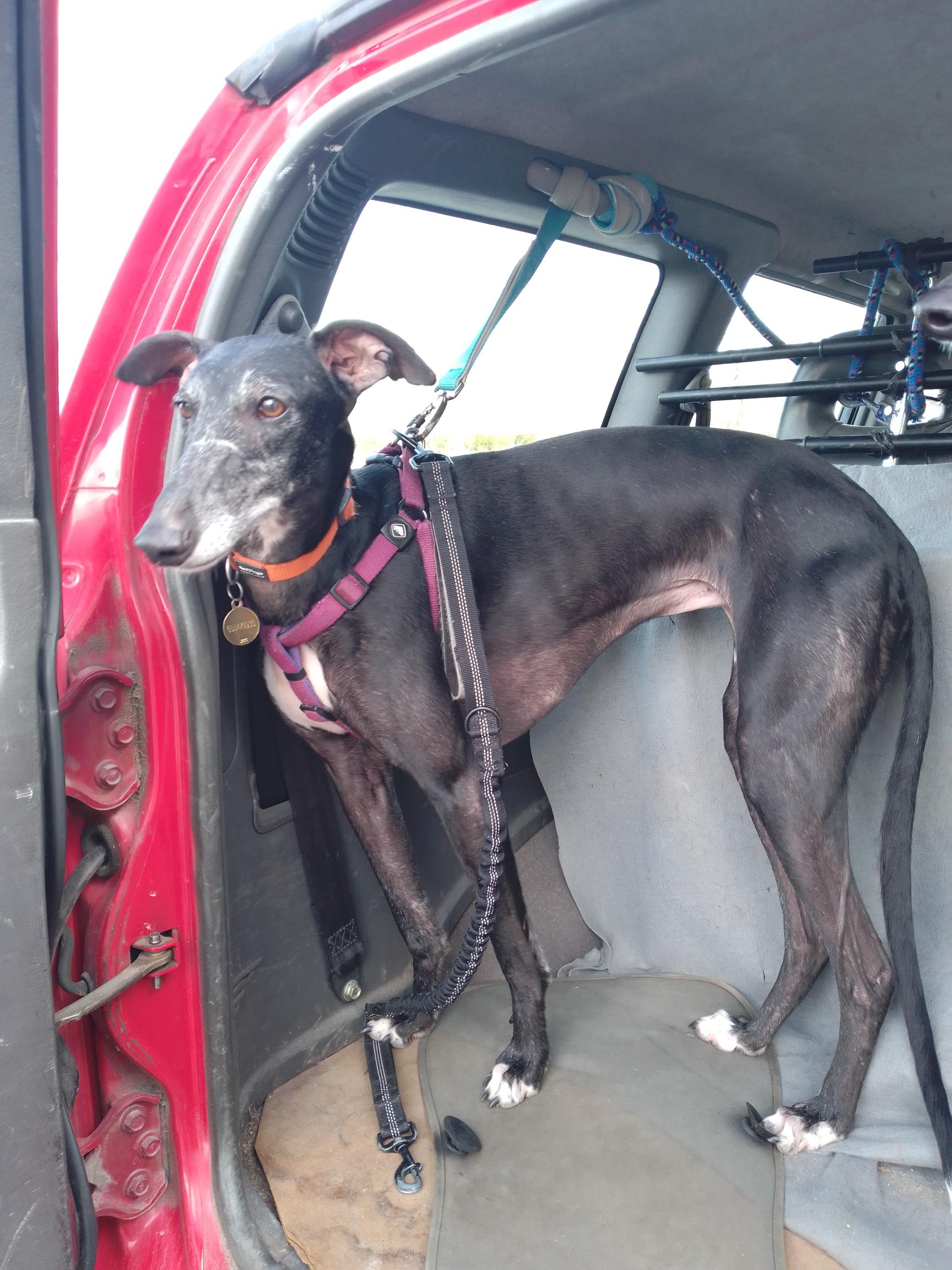 BRISA LA INTREPIDA!! Es una perrita sociable y activa, mas que la mayoría de galgos, tímida con desconocidos pero rápido coge confianzas y apego. Un poco nerviosa. La gusta correr y jugar con otros perros, aunque con algunos es un poco reactiva. No apta con gatos. Convive en casa de acogida con su hermana Selena, con la que juega mucho (posibilidad de adopción conjunta o individual). A veces no atiende a la llamada por lo que es bastante peligroso soltarla en espacios abiertos. Se entrega tras protocolo de adopción, con contrato de adopción y posterior seguimiento. Solo en la C. de Madrid. Interesad@s contactar con Proyecto Alegría Animal - Clara (655479930).