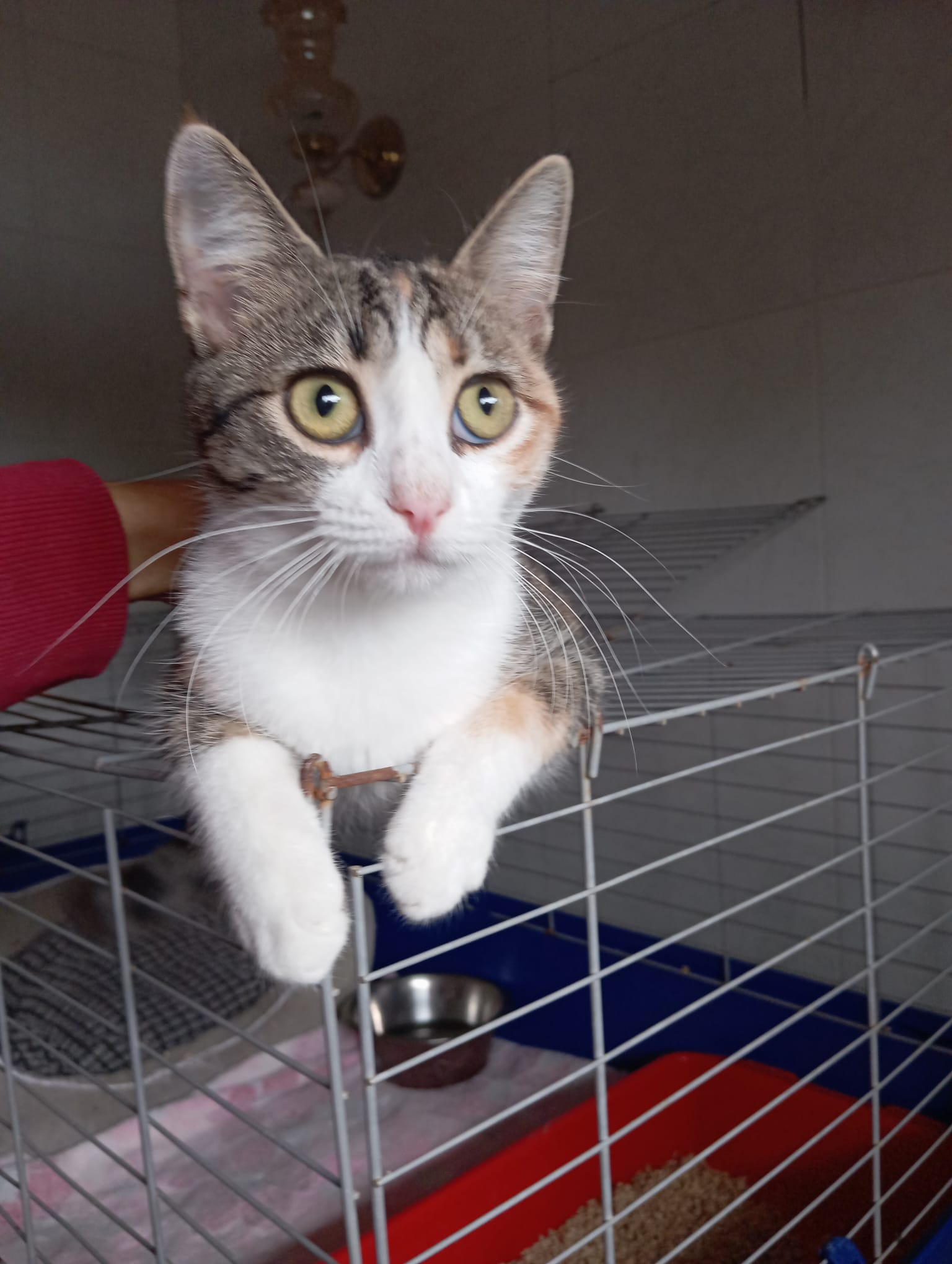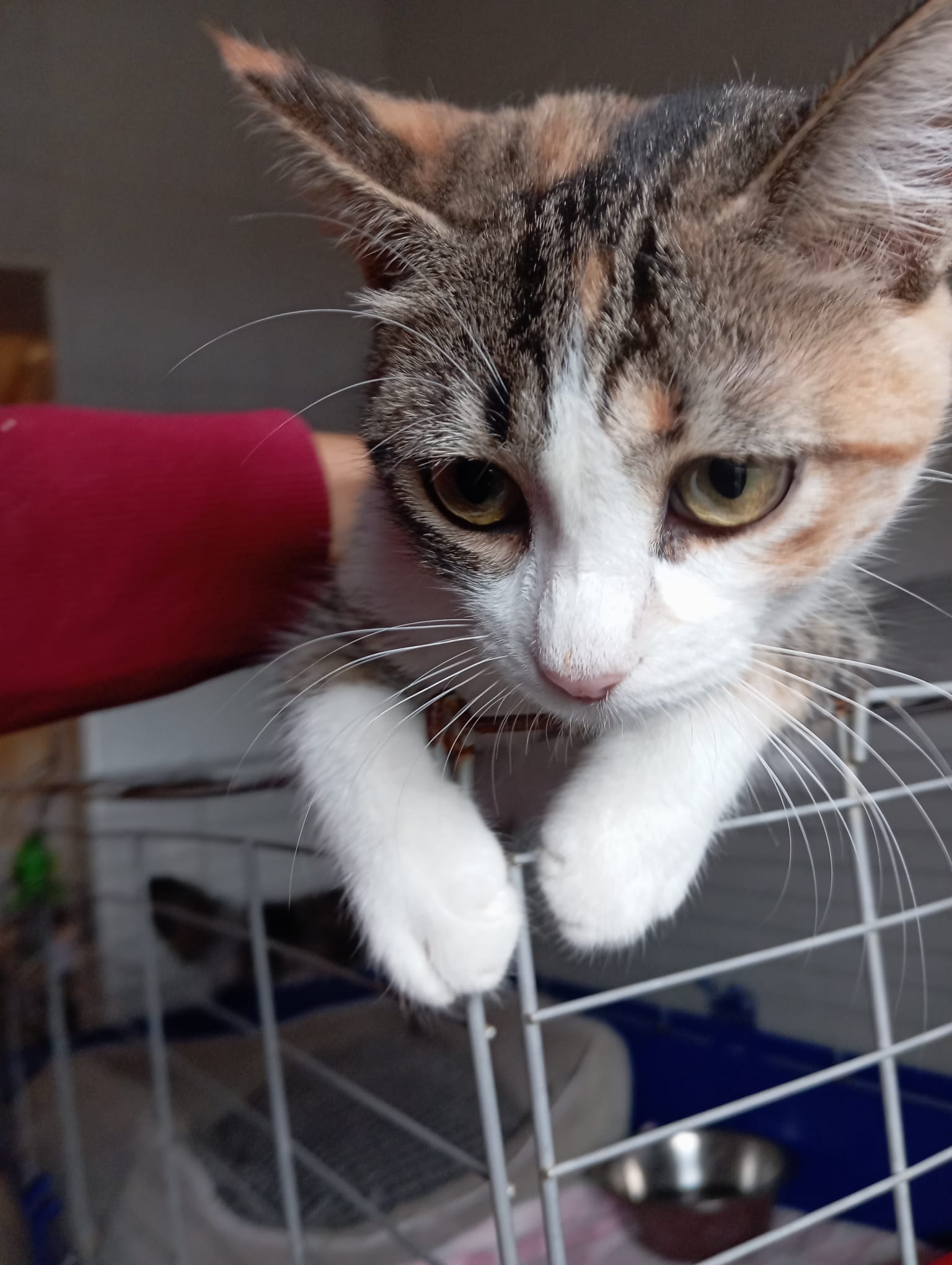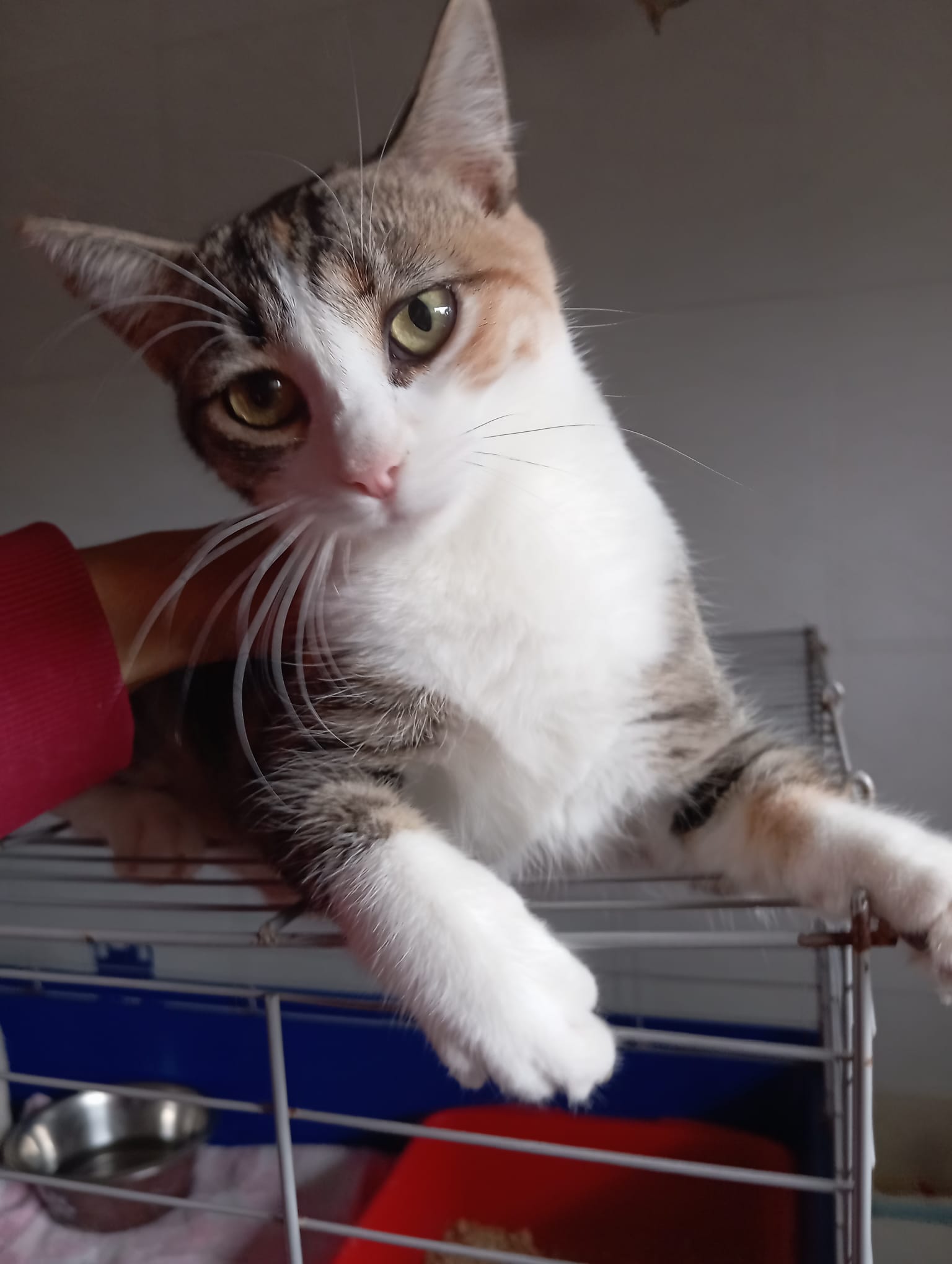 Es una gata tricolor súper bonita, simpática, juguetona y mimosa. Muy sociable y perfecta para vivir con otros animales
