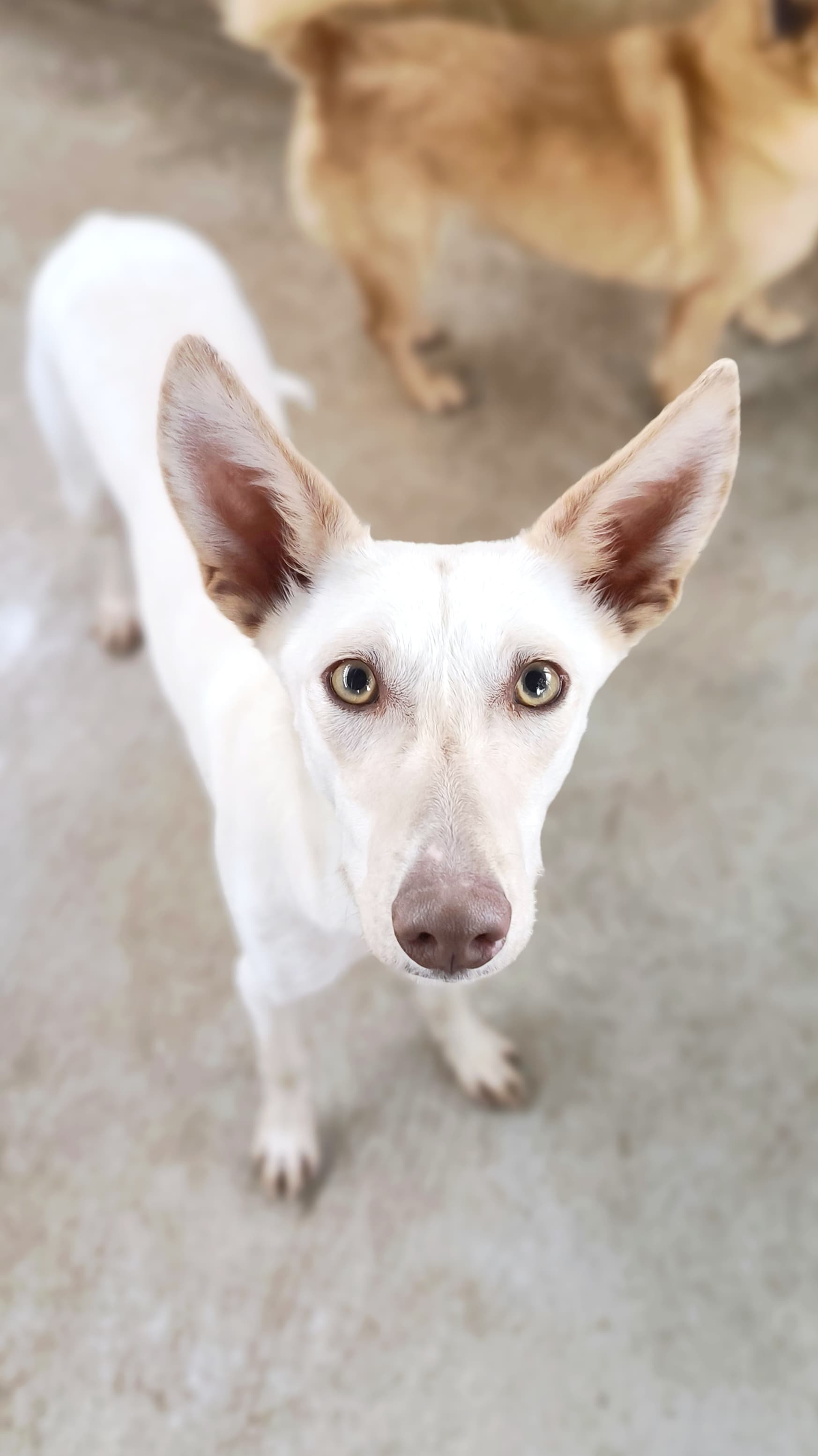 Paris es una podenquita que al principio tiene algo de miedo al humano, pero que cuando te conoce es capaz de abrir su corazoncito y empezar a confiar. Le encanta salir a los patios con sus compañeros perrunos y que la acompañemos en sus paseos.