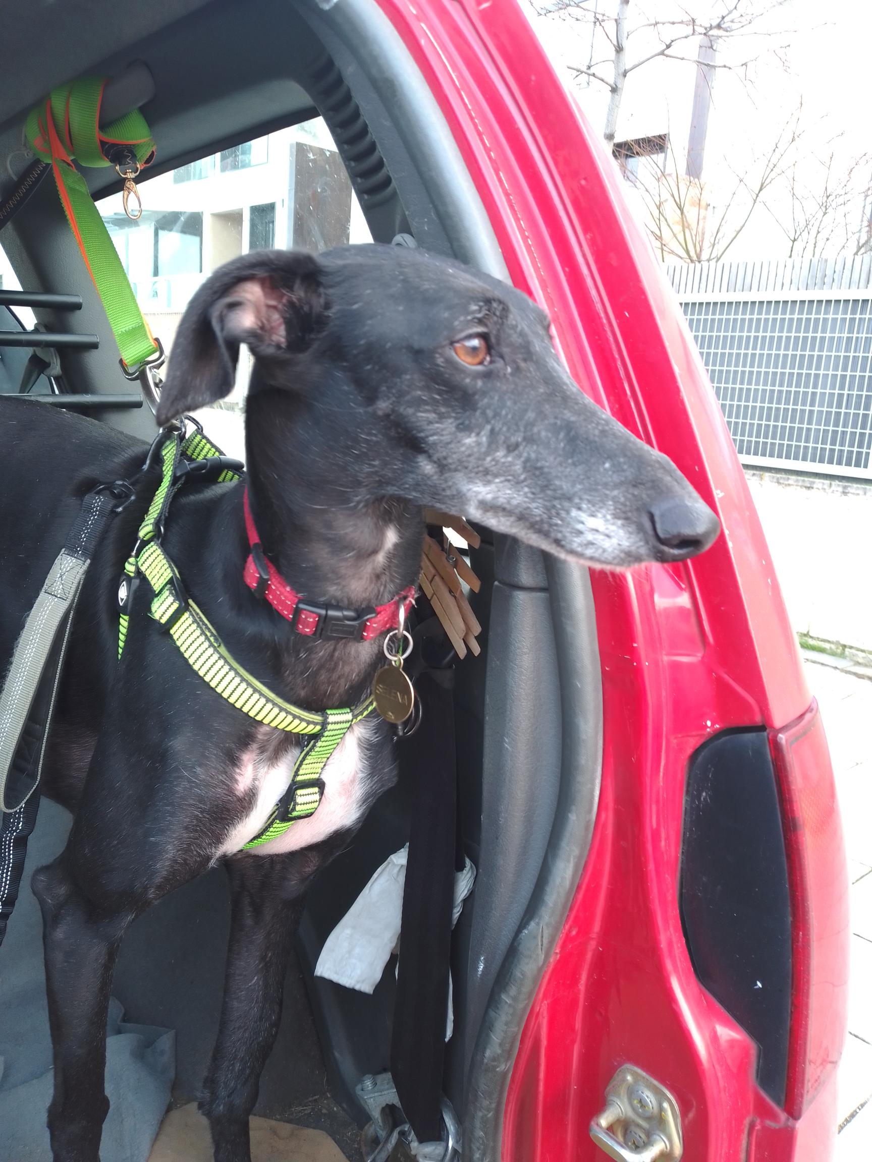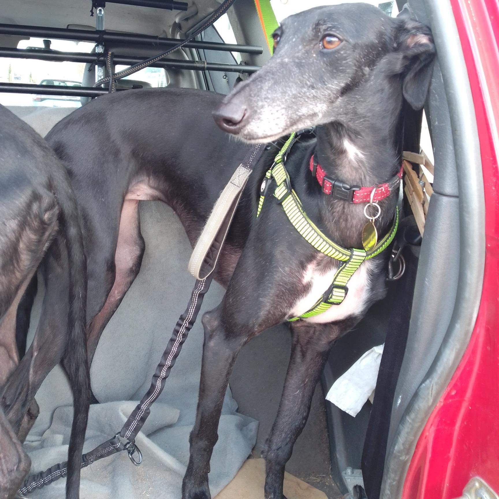 Recogida junto a su hermana Brisa abandonadas con 4 meses en un pueblo de Burgos. Llenas de pulgas y esqueléticas, ella tenía fracturada una pata delantera que tuvimos que operar cuando cogió un poco de peso. Se recuperó muy bien de la cirugía.