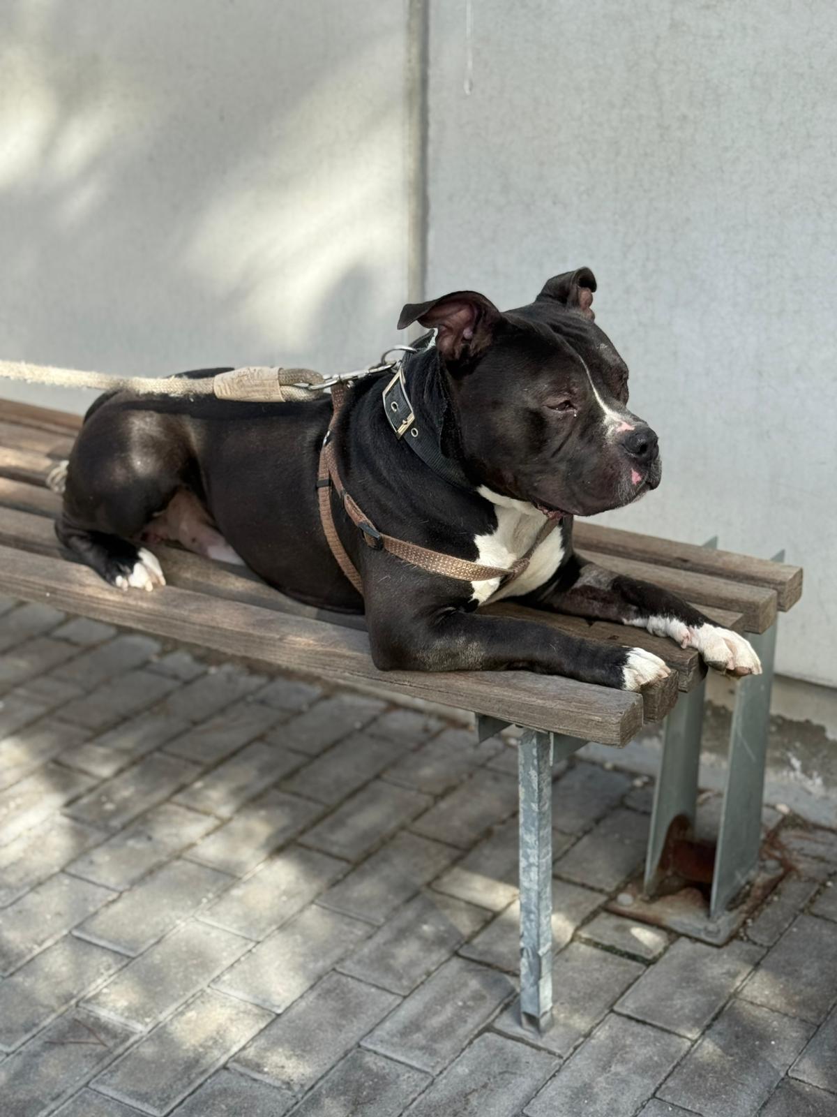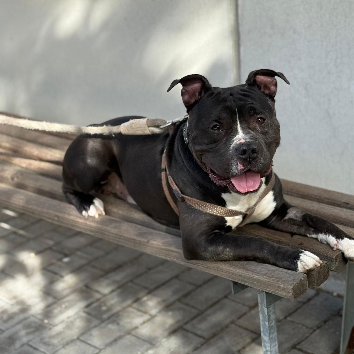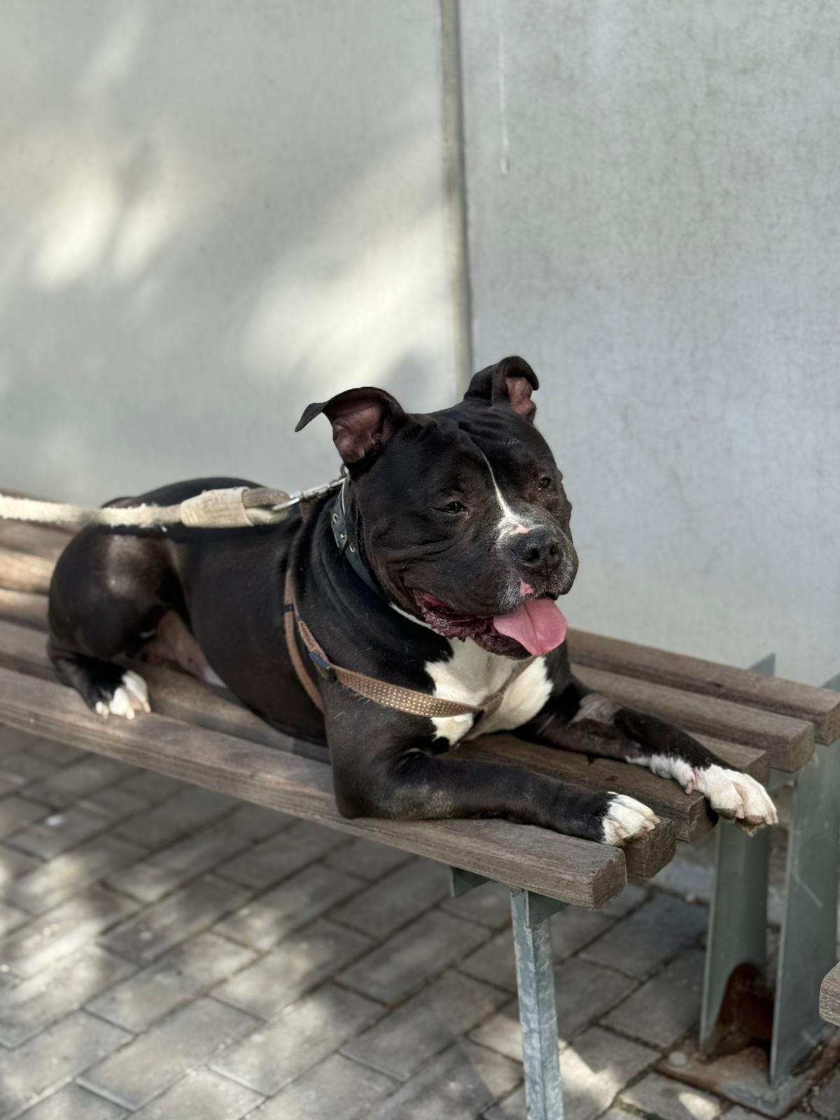 Sacado de la perrera, estaba muy estresado, se llevó a residencia sin jaulas donde han trabajado con el y convive perfectamente con perros y personas. Es un perro , sociable ,activo y cariñoso. Necesita gente que sepa de estas razas y que no sea sedentaria , ya que es un perro con bastante energía.