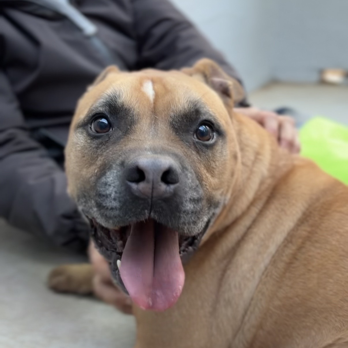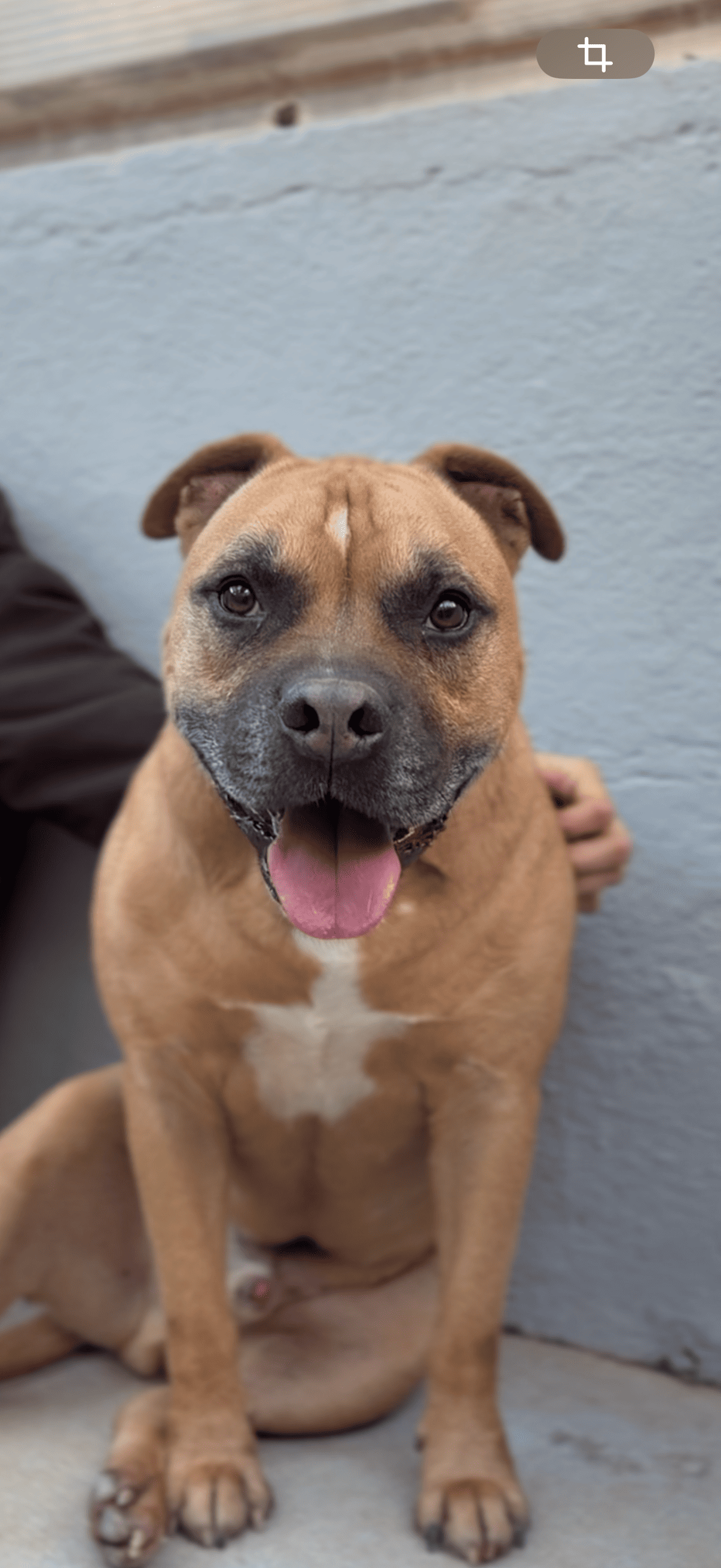 Humo es un mix de pitbull cariñoso y tranquilote al que le encanta pasear y que te sientes un ratito con él. Ya le toca encontrar una familia para siempre, que no le deje tirado.