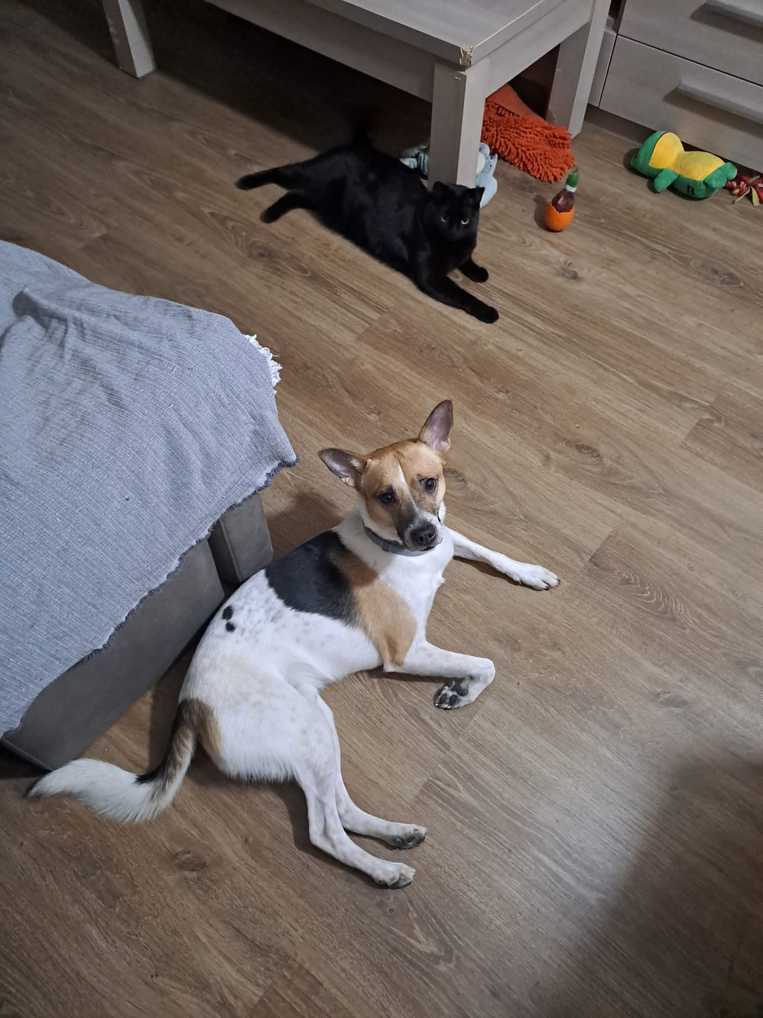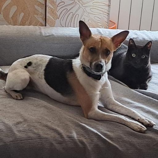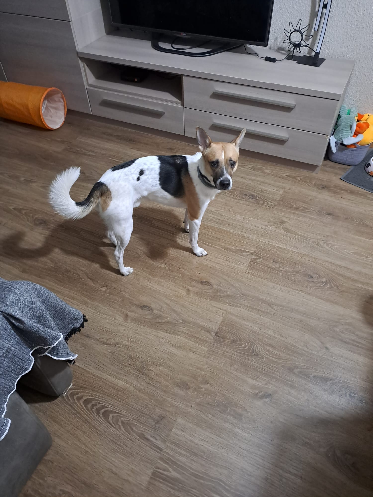 Kiko, 4 años, muy bueno y cariñoso, tamaño pequeño, activo. Convive bien con gatos. Necesita adopción urgente por enfermedad de la dueña. Es algoiedoso con los desconocidos.