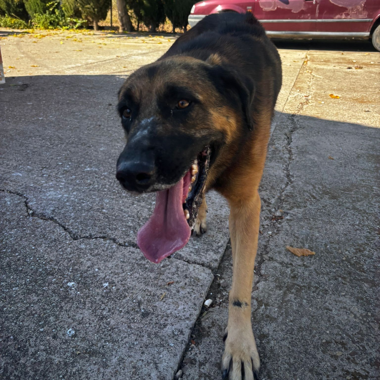Es muy bueno y sociable. Tyson es cruce de mastín. Es un Amor de animal, todo lo que tiene de grande lo tiene de bueno, tiene una necesidad de cariño enorme, nos angustia pensar que pase el resto de sus días en una jaula, se merece una oportunidad.