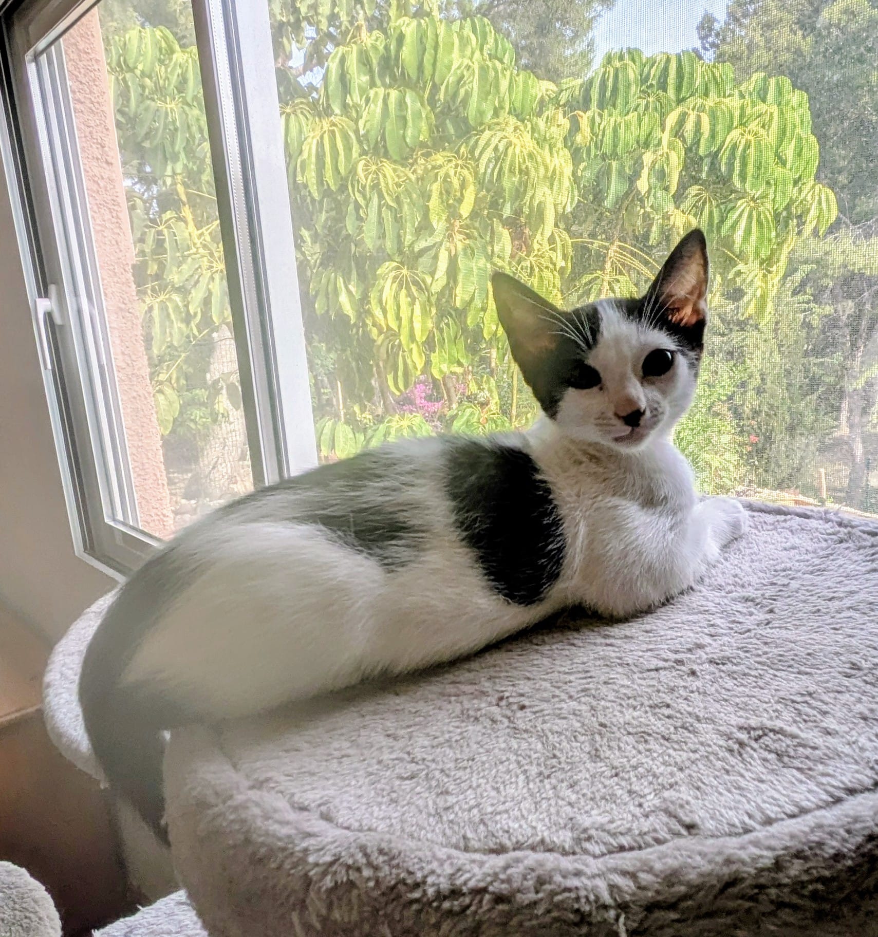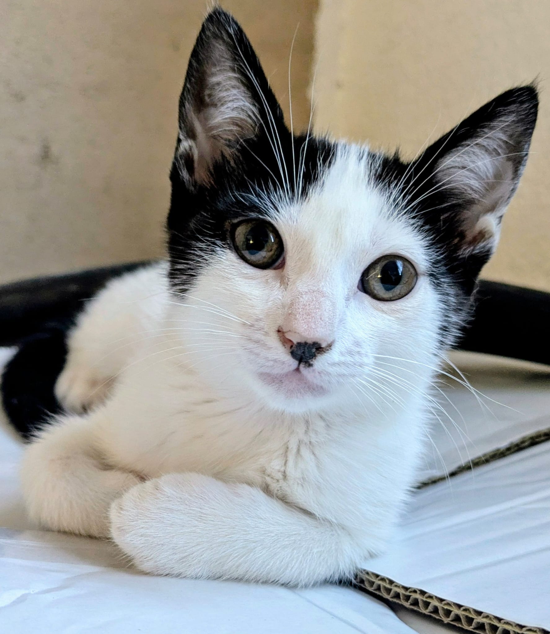 NOMBRE: Amy (blanca con manchas negras) FECHA NACIMIENTO: 24/03/25 RAZA: europeo TAMAÑO: estándar COMPORTAMIENTO: típicos de bebé.. Sociables. SALUD: buena ESTADO: en adopción FECHA DE ENTRADA: 24/03/25 HISTORIA: su mamá Brisa fue recogida muy embarazada de un polígono, donde amenazaban con matarla. Una compañera la acogió en su casa para que diera a luz a salvo. Tuvo 5 bebés peri una falleció debido a una malformación. CONTACTO: AYUDA ANIMAL 722196933 POR WHATSAPP ADOPCIÓN DE CACHORRXS (MENOS DE 6 MESES): -Cuestionario previo por correo, contrato de adopción y seguimiento post-adoptivo. El animal se entrega vacunado, con COMPROMISO DE ESTERILIZACIÓN, chipado, desparasitado interna y externamente y con cartilla. Los gastos son 180€ para gatos y 200€ para perros que deberá asumir el adoptante. ¡AYÚDANOS A AYUDARLES! ✔️CUENTA BANCARIA: ES8200730100590505177454 (OpenBank) ✔️TEAMING: https\://www.teaming.net/ayudaanimalprotectorademurcia