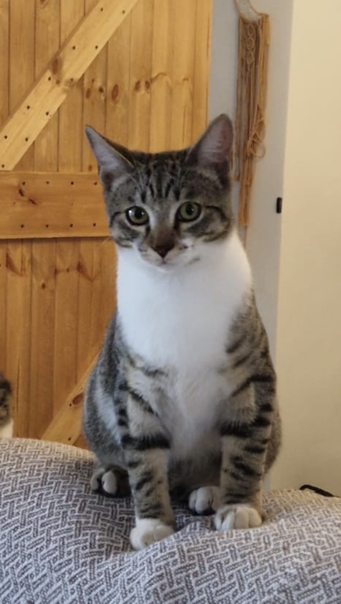 Se entrega en adopción conjunta con alguna de sus hermanas/o o en hogares donde ya haya otro gatito