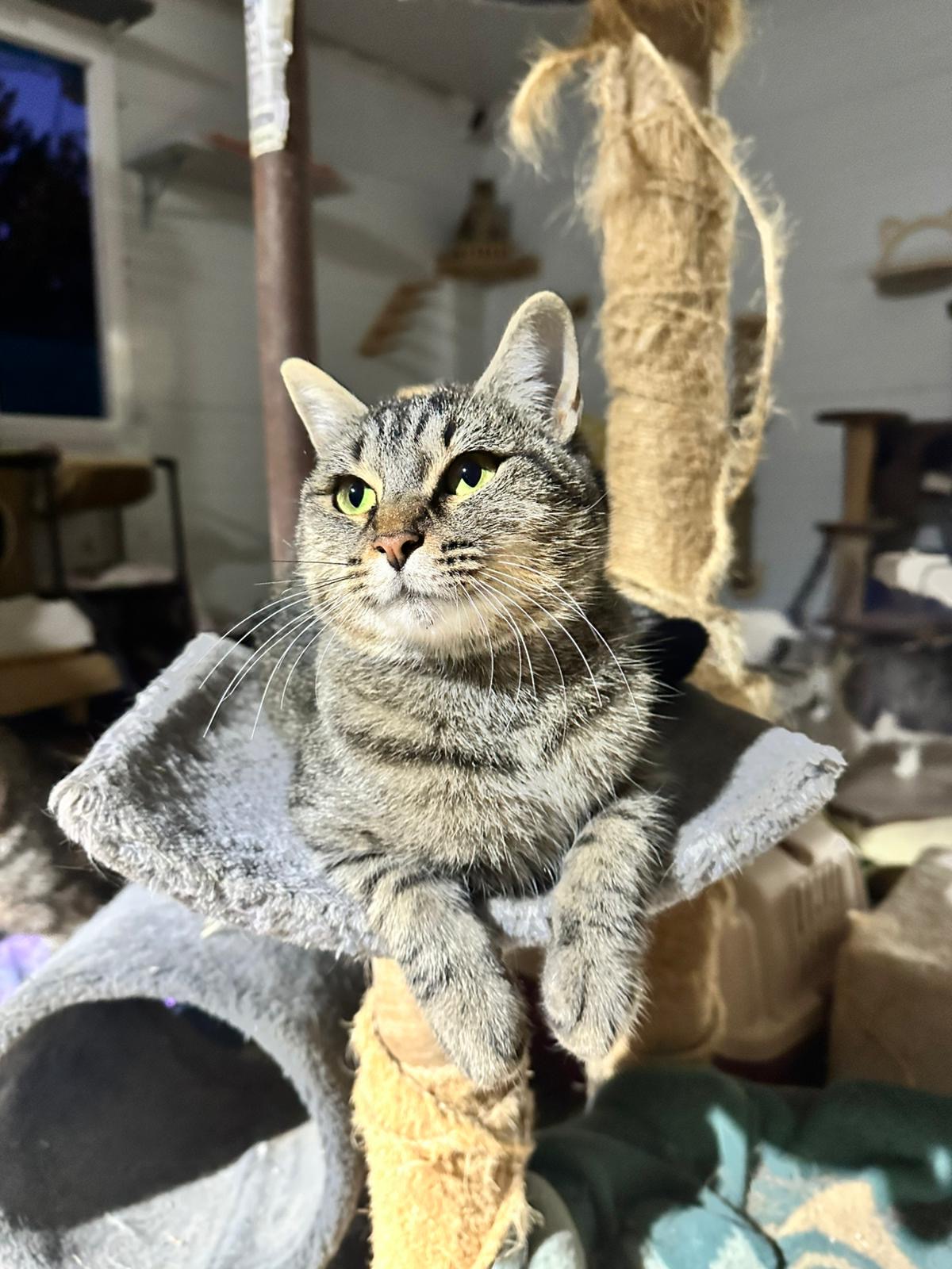 Corona es una mami valiente, tuvo a sus hijos en la entrada de un hotel y consiguió ponerlos a salvo hasta que la rescatamos, todos sus hijos se han ido adoptados pero ella no encuentra aún un hogar y vive aterrada en el refugio, le da mucho miedo el resto de gatos y se pasa el tiempo escondida, dale un hogar como se merece y no te arrepentirás de ser su familia❤️❤️❤️