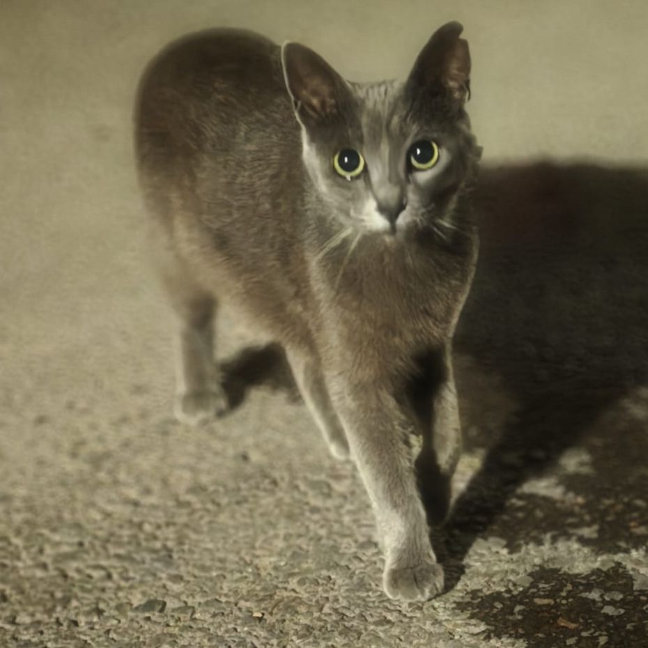 Grisa es hija de Ruby y león, dos gatos de una mujer mayor que falleció y se quedaron en la calle junto a su familia gatuna. En la calle corren peligro de atropello y envenenamiento ya que hay vecinos que no la quieren. Busca acogida o adopción.