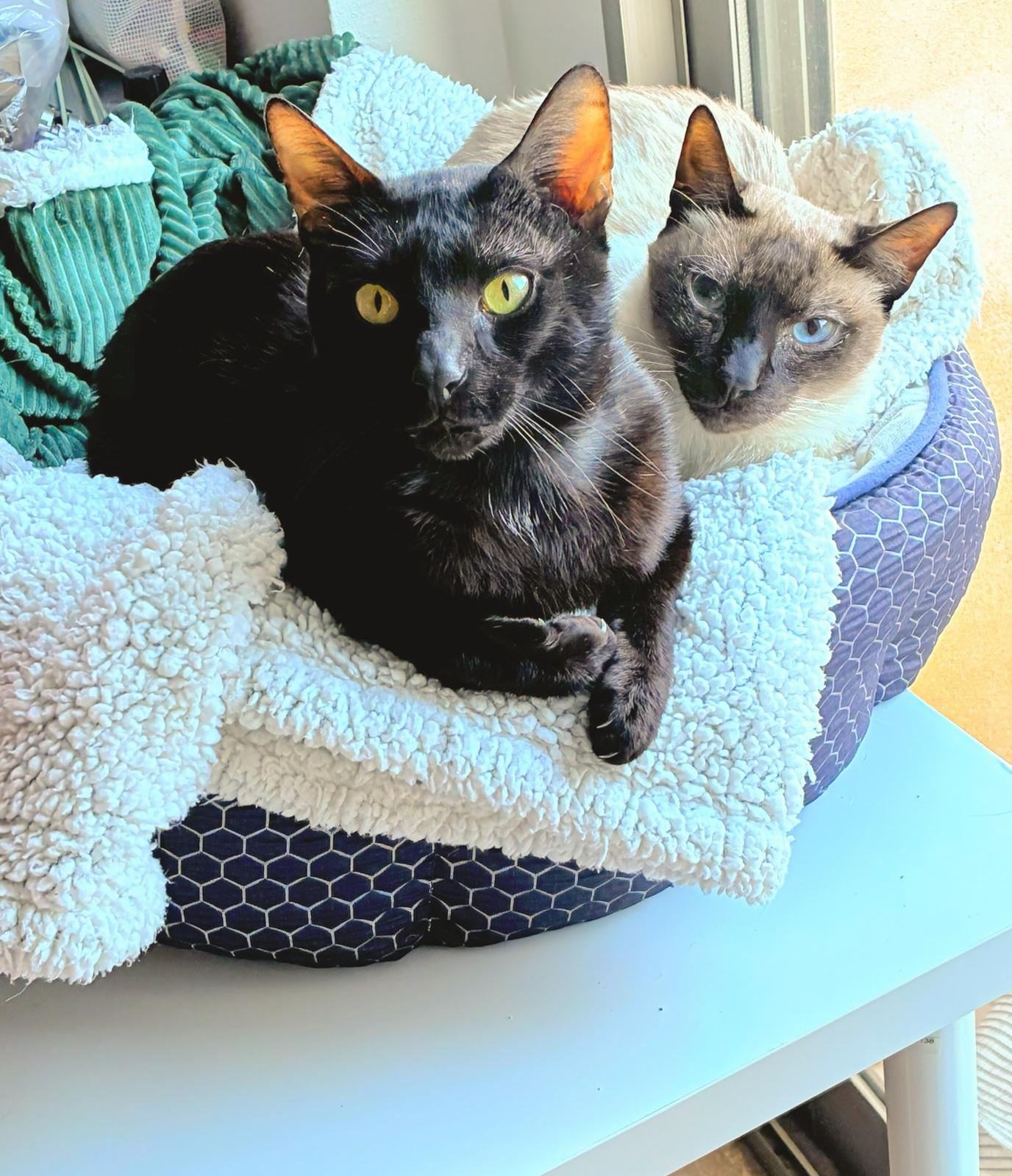 *Buscamos a esa persona especial* Alguna vez habéis oído hablar de esas maravillosas personas que van a un refugio y dicen: “quiero adoptar al que más necesitado esté, al invisible, al que peor lo haya pasado”? Pues este es uno de esos casos y buscamos a esa persona. Ellos son *Churu y Lázaro*. Aunque sus historias son distintas, tienen en común una cosa: la vida no les ha tratado bien. *Churu* fue criado en un hogar. Cuando creció y dejó de ser ese bebé siamés adorable, su humano decidió que ya no lo quería, y literalmente le abrió la puerta de la calle y no le dejó volver a entrar. Estuvo dos meses intentando sobrevivir de lo que encontraba de la basura, no sabía esconderse entre los coches, protegerse del frío y la lluvia ni cruzar la carretera. Fue perdiendo peso hasta el punto de que su vida corría peligro, así que decidimos intervenir y empezar la recuperación. Churu está traumatizado, es de los casos de miedo más fuertes que hemos visto, le tiene pánico a todo, incluido las personas que no conoce, y es un gato que necesita mucho tiempo y comprensión. Os damos una pista: los Churus le ayudan a coger confianza más rápidamente ;) *Lázaro* se refugió en un garaje donde una señora le empezó a dar de comer. Pero poco a poco su condición se fue deteriorando hasta el punto de que parecía un esqueleto andante, pesaba 3kg. Tenía anemia muy severa, parámetros hepáticos y renales alterados y gran inflamación intestinal. Lo llamamos Lázaro, pensábamos que no iba a sobrevivir pero vaya, se levantó y anduvo. Ahora con corticoides y pienso especial, está engordando y mejorando. Es un amor, solo quiere mimitos y estar con las personas. ¿Pero sabéis que les ha hecho mejorar realmente? El uno al otro❤️ Desde el primer día se eligieron. La conexión y el amor que se tienen es increíble. Si uno enferma, el otro no se separa. Se han encontrado y nos han dejado claro que no se van a separar. *Churu y Lázaro* -Machos -Dos años aproximadamente -Adopción conjunta. -Hogar tranquilo, con paciencia. -Se encuentran en Murcia, pero pueden viajar si allí les espera su familia. -Imprescindible protecciones en ventanas/balcones. -Contacto: 603337614 “A veces el amor llega en forma de dos gatos que se encontraron cuando más lo necesitaban”