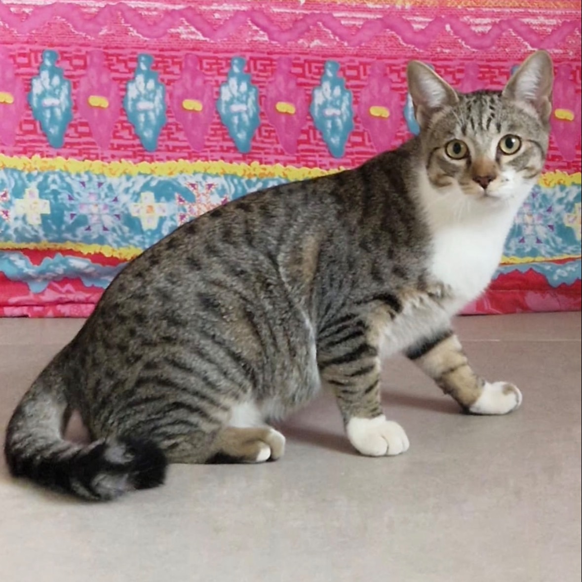 Se entrega en adopción conjunta con alguna de sus hermanas o en hogares donde ya haya otro gatito