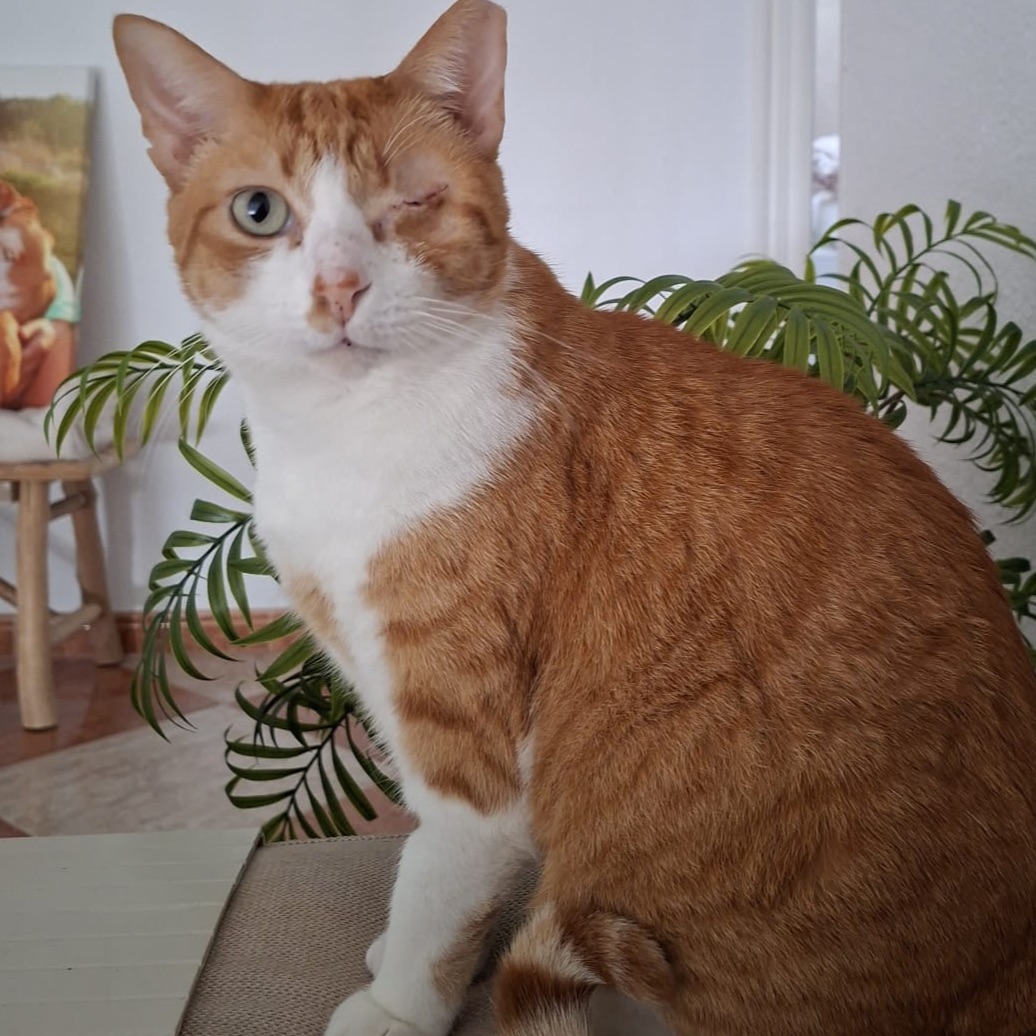 Melo es un gato 10, cariñoso a más no poder, tranquilo y bueno. Fue abandonado en una colonia y resultó tener un cuerpo extraño en el ojo que hubo que operar y quitar debido a que se le hinchaba cada vez más. Necesita una adopción