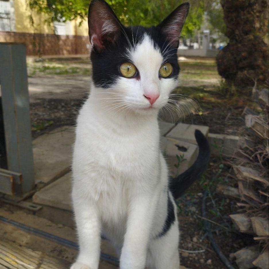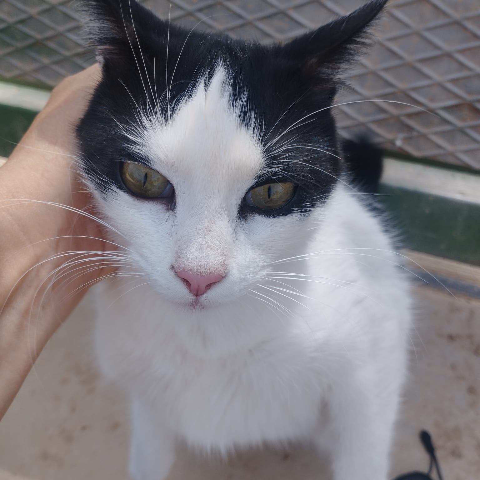 A diferencia de otros gatos que mantienen las distancias, Mochi es un "gato-lapa". Su pasatiempo favorito es el cabezazo de amor; te buscará la mano para darte pequeños golpes con la frente, reclamando caricias. No necesita mucho para empezar a ronronear; basta con que lo mires y le digas algo bonito para que su "motor" se encienda a toda potencia. Tiene unos preciosos ojos ámbar, grandes y brillantes que parecen agradecerte cada segundo de atención. "A veces, los que menos tienen son los que más amor guardan para dar."
