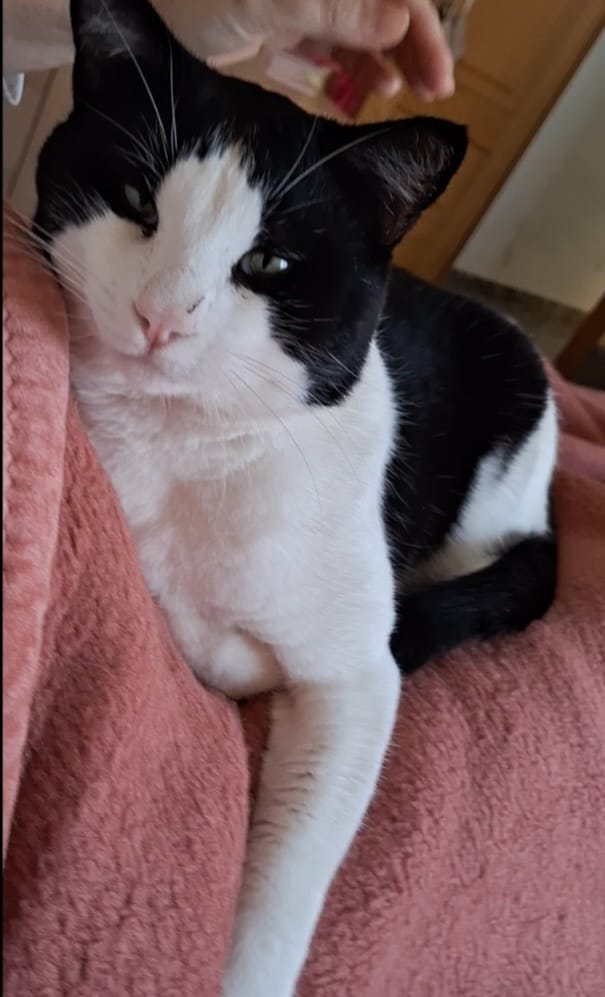 Tommy es una galletita oreo más dulce que las oreo y muy amoroso. Tiene 3 años y está castrado, desparasitado y vacunado. Es un gato muy tranquilo. No suele jugar. Es un gato de mantita, sofá, cama ... y de estar contigo calentito donde tu estés. Es positivo a inmuno pero tiene una salud de roble. Jamás ha cogido ni un resfriado. Pesa unos 6 kilos y es mediano - grande de tamaño
