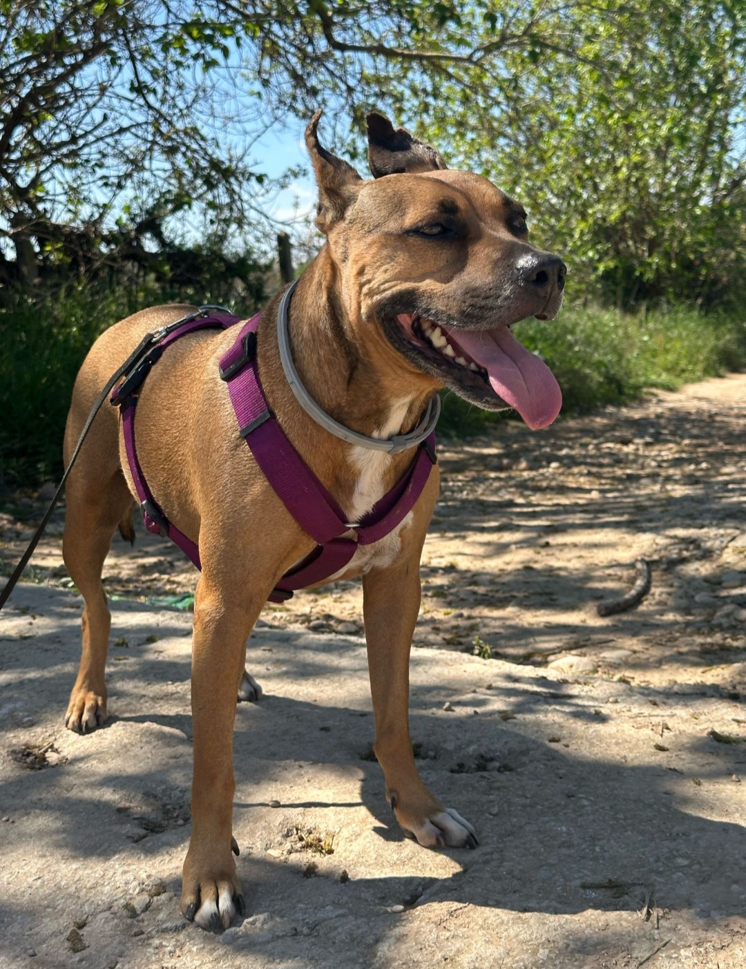 A Lía la abandonaron en la puerta del refugio en 2022, estaba desnutrida y tenía leishmania que estaba afectándole a la piel. Gracias a los veterinarios y a su casa de acogida la leish se ha negativizado y ahora no toma medicación para ella. Sí toma suplementos para la artrosis. Por alergias no puede comer pollo, pavo ni cerdo pero le encanta todo lo demás! Su acogida ha terminado y ahora Lía está en el refugio, la notamos más triste y desubicada. No pierde ninguna oportunidad de conseguir mil caricias de los voluntarios y de tomar el sol, pero necesita un hogar