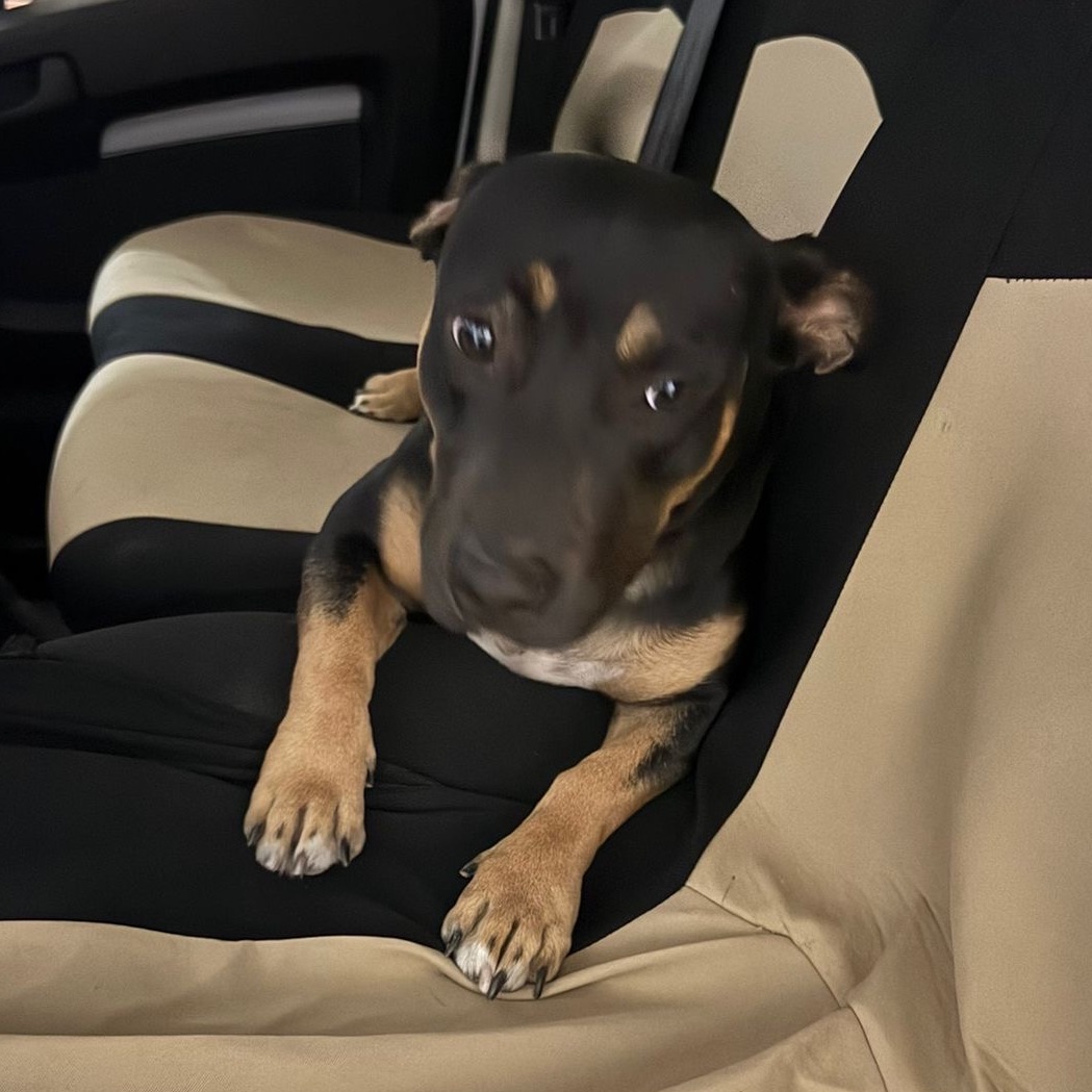 Es una hembra mestiza de 13 kilos. Amable con las personas, aprende pronto. Por su pasado, le cuesta socializar con perros y/o gatos, pero con paciencia lo consigue