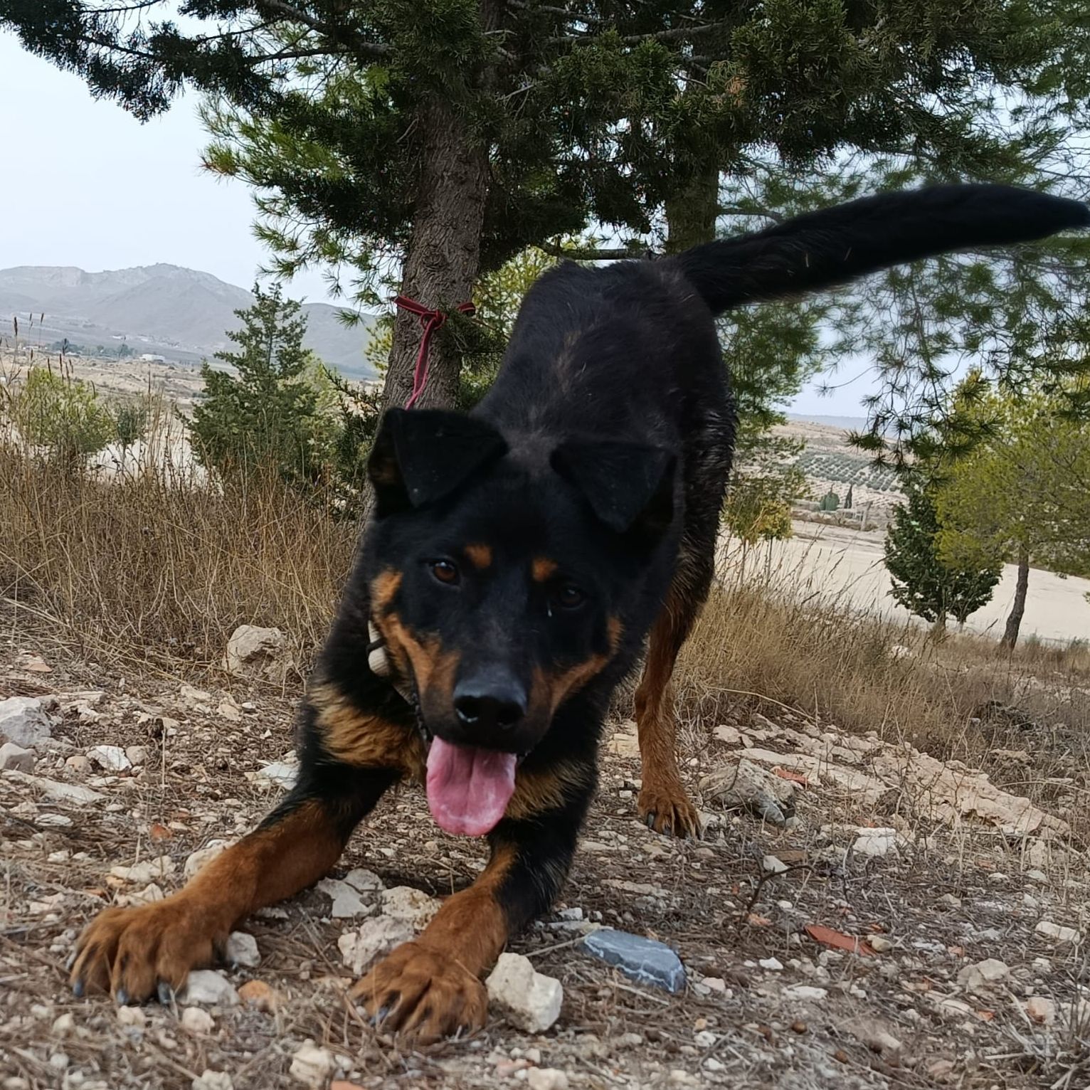 Nombre: APU Raza: Mestizo Capa: Negro y fuego Sexo: Macho Castrado: no Fecha de nacimiento: 01.06.24 Altura: 66 cm Peso: 24 kilos Comportamiento con perros: No comprobado Comportamiento con gatos: No comprobado Niños: No comprobado Carácter: Simpático, equilibrado, sociable, cariñoso. Le encanta estar con gente. Paseo con correa: Sí, muy bien Historia: Iba paseando por una zona rural de la pedanía de La Zarza con un Border Collie. Unos vecinos lo recogieron y nunca se encontró a su familia. Salud: Sin síntomas. No hay analítica. Contacto: Cuatro Patas Jumilla WhatsApp: 656989417