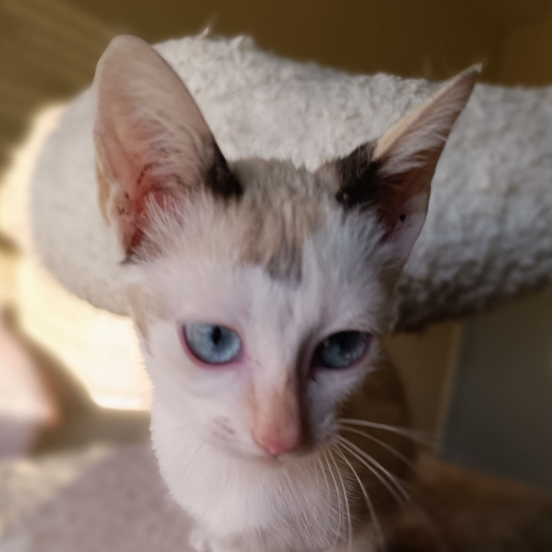 Sheyla es una gatita de tres meses que ya conoce en sus carnes lo que es el abandono. Quiere dejarse querer y al principio tiene un poquito de recelo pero en cuanto la tocas se empieza a ronronear y a rozar su cabeza en tu mano, pidiendo cariño. Se lleva genial con gatos ,de hecho comparte habitación con su hermanastra Vega y con Tony. Está desparasitada, con la vacuna trivalente, y pasaporte y test negativo a leucemia e inmunodeficiencia felina. Lista para ser adoptada en un hogar donde la cuiden durante toda su vida, y donde el abandono solo sea un mal recuerdo.