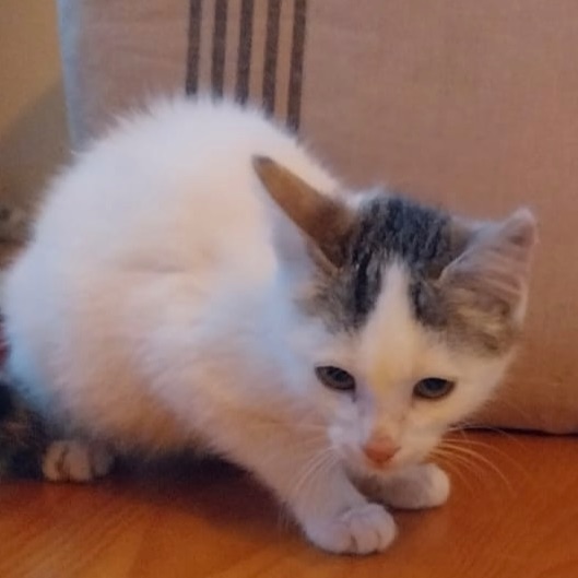 Gatita de la calle nació tarde y la madre no La ha amamantado demasiado x lo q es pequeña. La estamos cuidando y se está poniendo muy bonita. Necesita una casa o no aguantará el invierno