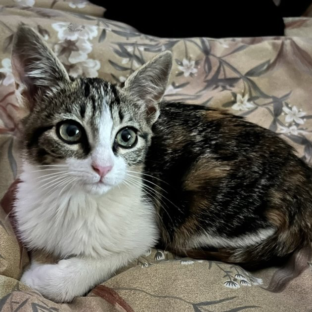 Gatita rescatada de una camada de la calle. Todos sus hermanos están ya adoptados y solo queda ella en una casa de acogida. Limpia, cariñosa , un poco tímida al principio pero luego ya es todo amor