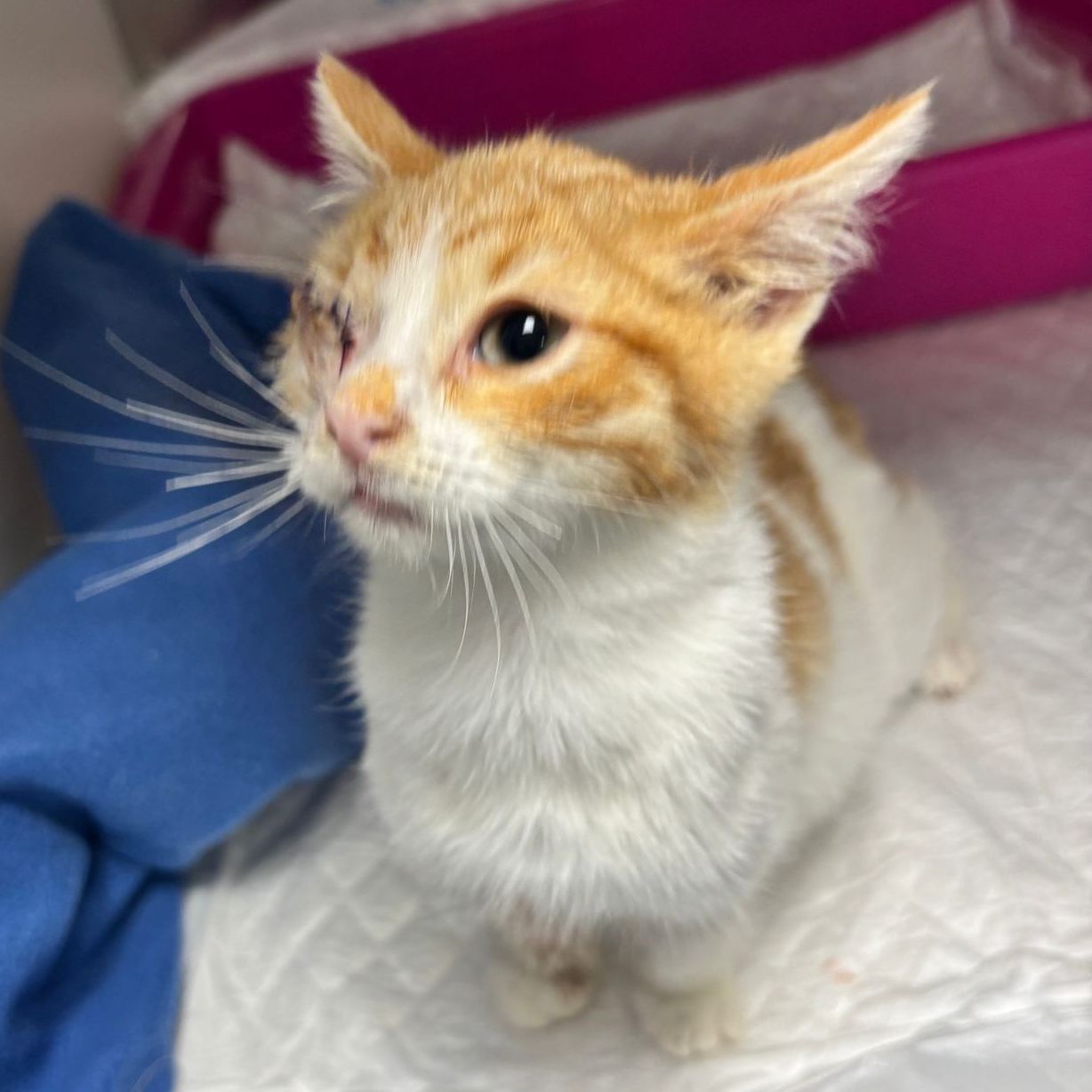 Mandarina 🍊 es una gatita muy valiente que a pesar de haber perdido un ojito no ha perdido las ganas de vivir. Ahora busca un hogar donde le den mucho amor.