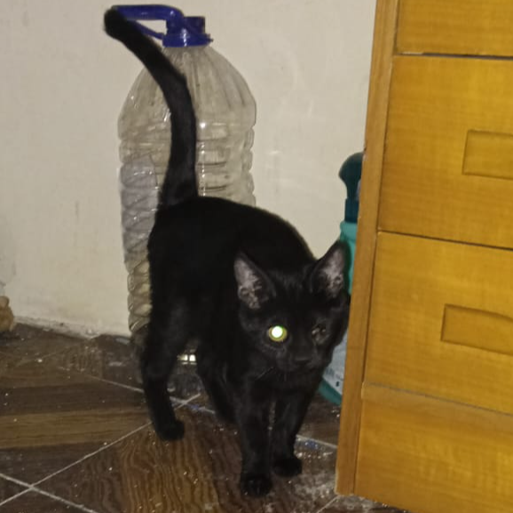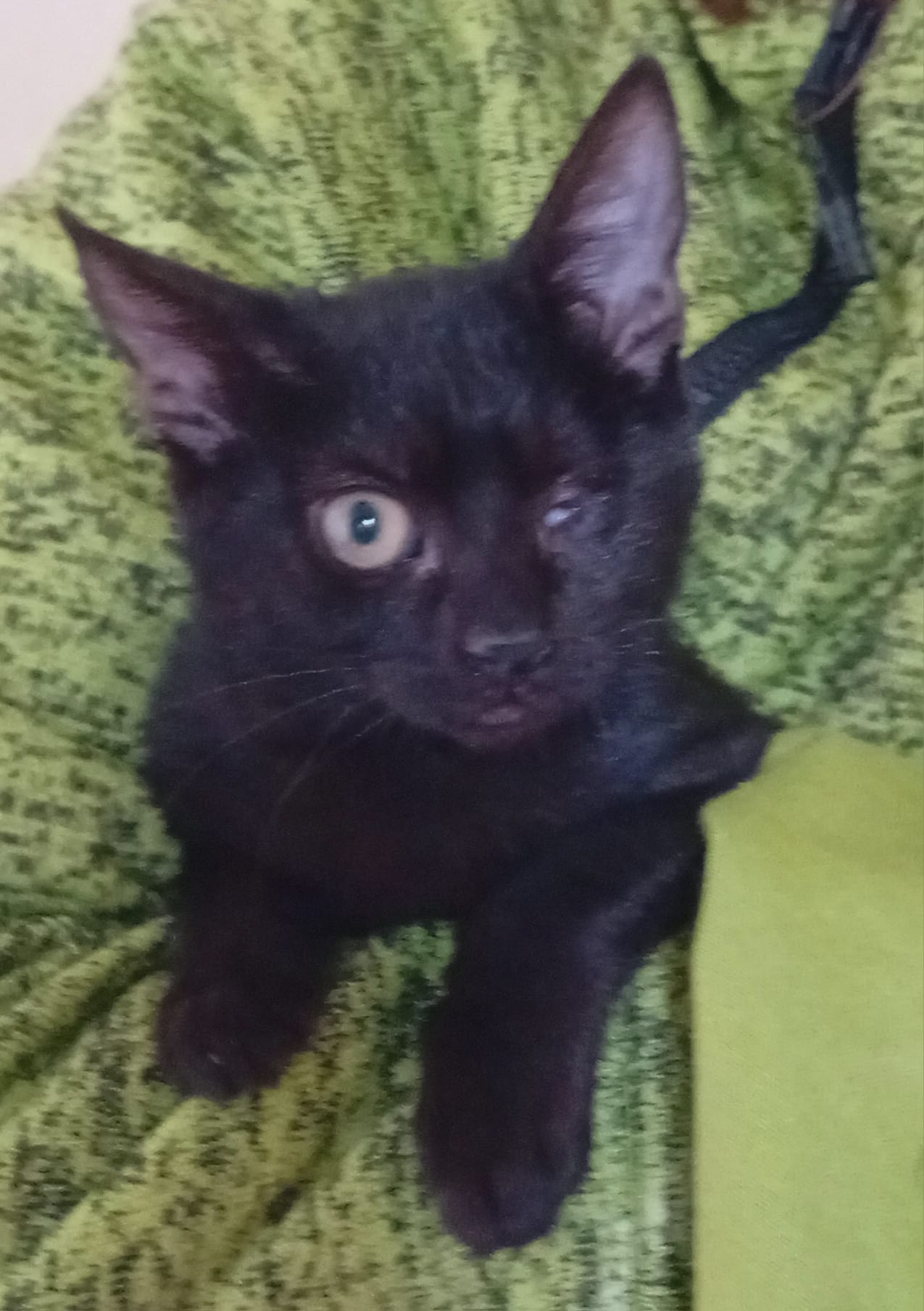 Cala estaba en una colonia, tenía un ojo muy mal y tuvimos que recogerla. Por desgracia, no conseguimos llegar a tiempo para salvar su ojo, lo tiene, pero es inservible. Es muy buena y cariñosa aunque un poco tímida al principio, pero en seguida se hace a ti y pide mimos y latitas con mucho amor.