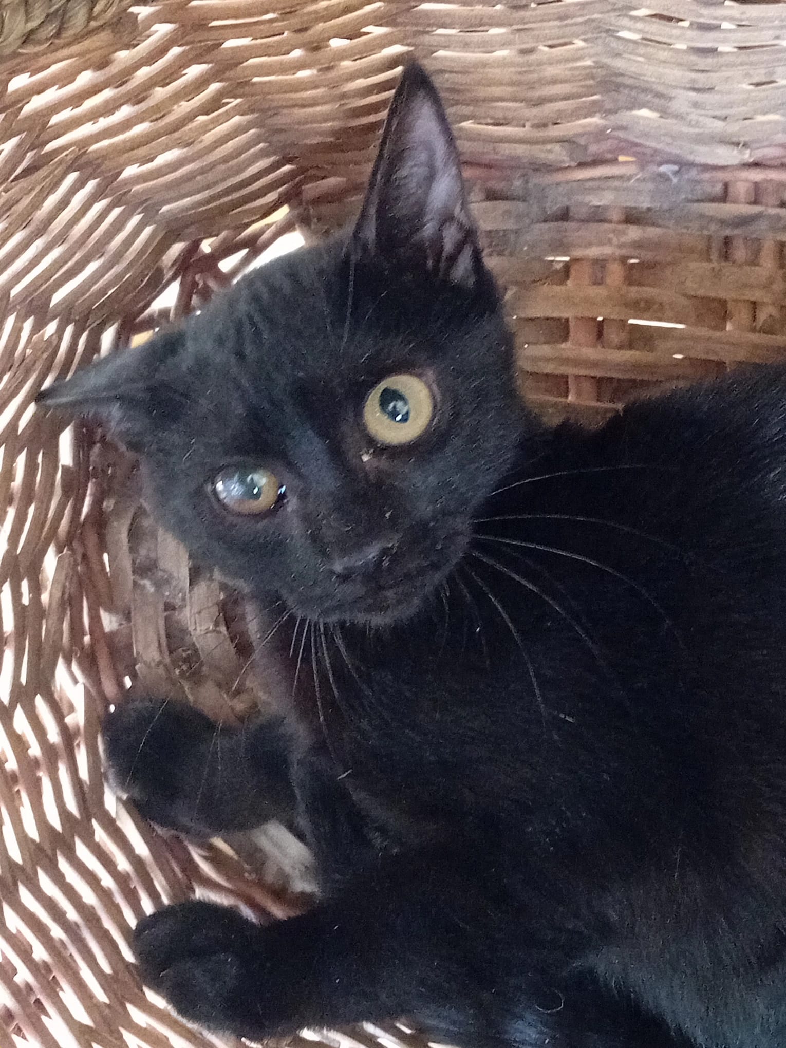 Lana, está enfermita, pendiente de una operación de oído, el día 08 de octubre fuimos ha hacerla una resonancia y se ve cómo tiene el oído obstruido. El martes 14 de octubre nos llamarán para ver qué tipo de operación necesita. También tuvo herpesvirus, por eso tiene una ligera película en el ojo que no la impide hacer vida normal. Iremos actualizando