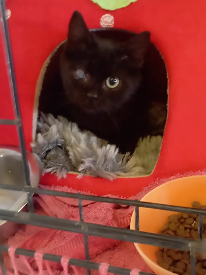 Una gatita diminuta, de esas que te caben en las manos… y en el corazón. Pesa menos de un kilito y es, literalmente, más dulce que un algodón de azúcar. Apareció solita buscando comida en la colonia de una compañera. Iba y venía, porque no pertenecía a esa colonia, pero enseguida nos dimos cuenta de que algo le pasaba en su carita y eso nos tenía muy preocupadas. Como no sabíamos de dónde venía ni cuál era su historia, tuvimos que crearle una pequeña rutina. Poco a poco empezó a confiar, a venir de forma más constante y, finalmente, conseguimos capturarla con la jaula trampa. Al llevarla al veterinario pudimos comprobar que algo le había ocurrido en uno de sus ojitos: lo tiene totalmente perdido. No sabemos qué pasó ni cuál fue su procedencia, pero la buena noticia es que Baraka está bien, no tiene dolor y puede hacer una vida completamente normal. Al ser tan pequeñita, se ha decidido esperar a que tenga unos seis meses, cuando se la castre, para aprovechar y enuclear el ojito. Baraka está totalmente sana, negativa a enfermedades, desparasitada y vacunada. Y además es un auténtico amor: cariñosa, mimosa, delicada… una de esas gatitas que solo quiere sentirse segura y querida. Sigue buscando adopción. Sigue esperando ese hogar donde la cuiden, la protejan y la quieran para siempre, como ella merece. 💜Para adoptar o ser casa de acogida: -losamigosdeviky@hotmail.com - 653 28 10 06 o 651 43 55 82 (whassapp)