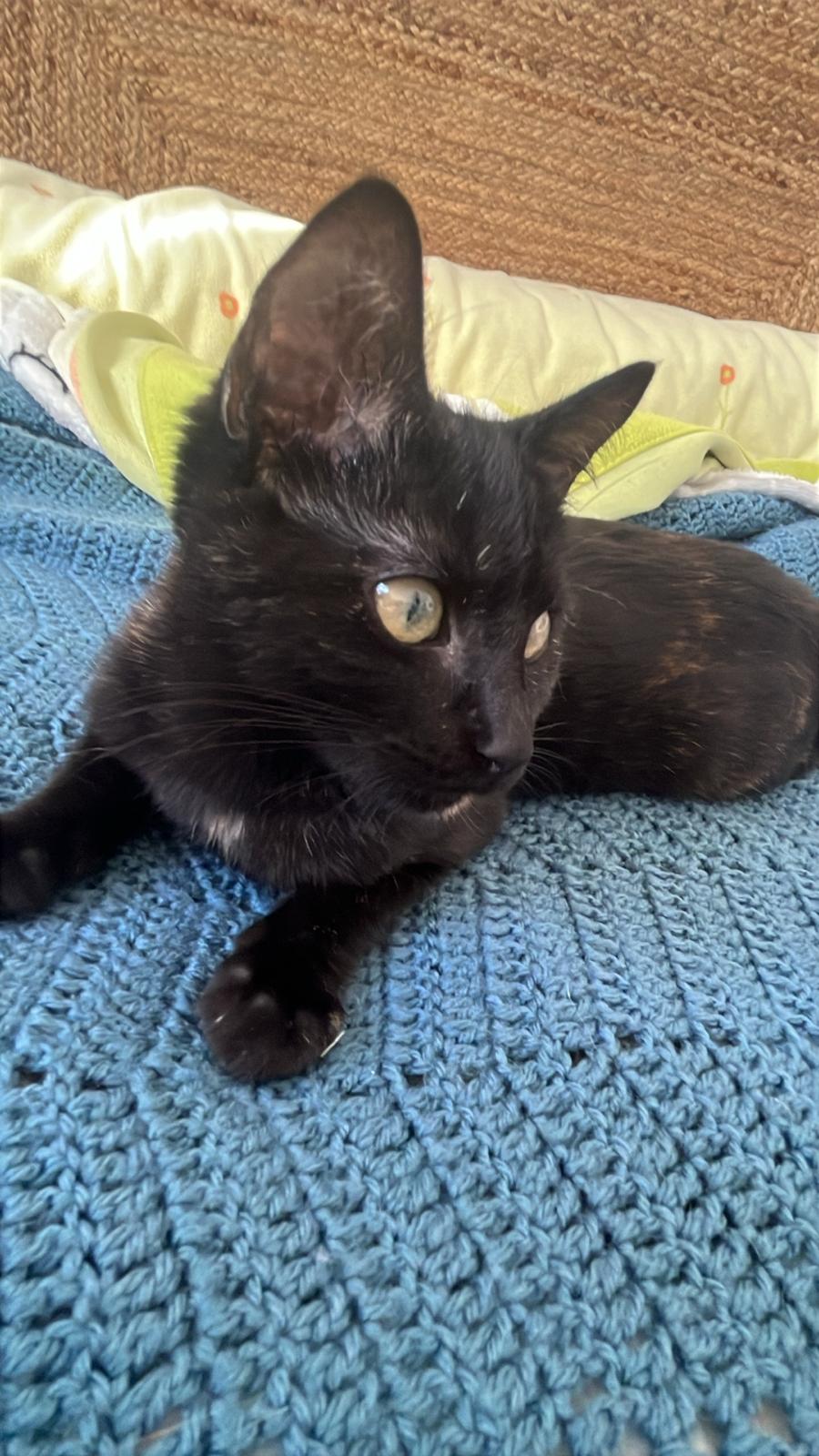 Bruja es una gatita rescatada de una colonia felina, allí la dejaron junto con sus hermanos y en uno de esos días que entramos para alimentarlos ella se nos metió en una jaulita. Es una gata encantadora, increíblemente buena, cariñosa, sociable y le encanta ronronear, ahora mismo esta en una casa de acogida pero busca un hogar definitivo. Bruja se dará en adopción mediante cuestionario pre-adopción y contrato. Si quieres darle un hogar a esta pequeñaja escríbenos al email: losamigosdeviky@hotmail.com teléfono 653281006 (solo whassapp)