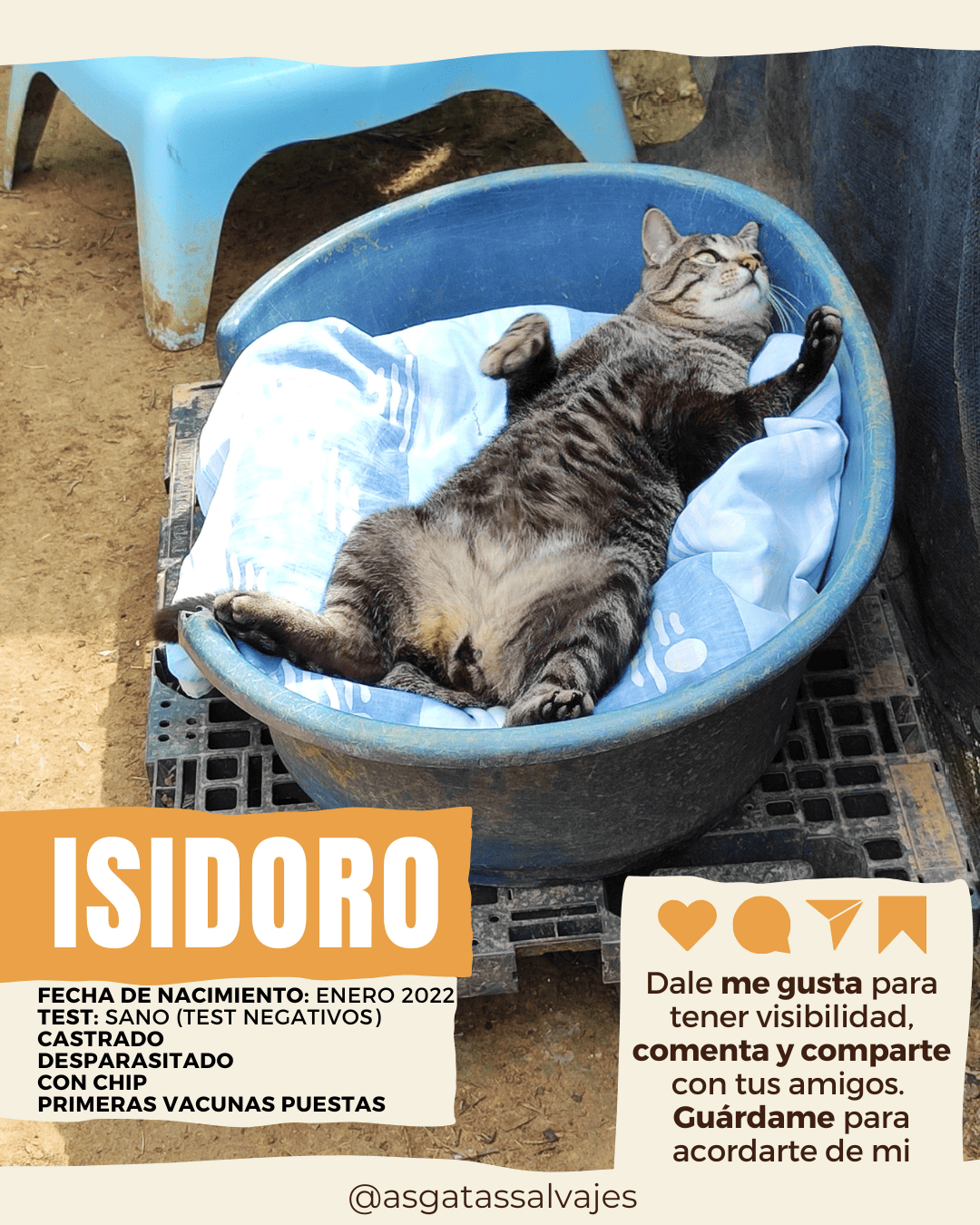 Nuestro Isidoro llegó a nosotros ya que nos avisaron de que, con 𝘁𝗮𝗻 𝘀ó𝗹𝗼 𝟭𝟭 𝗺𝗲𝘀𝗲𝘀🥺, frecuentaba una obra en la que vivía. La mejor opción es que𝗜𝘀𝗶𝗱𝗼𝗿𝗼 𝘀𝗲𝗮 𝗮𝗱𝗼𝗽𝘁𝗮𝗱𝗼 𝗰𝗼𝗺𝗼 𝗴𝗮𝘁𝗼 ú𝗻𝗶𝗰𝗼😻 en un hogar, ya que tuvimos un intento fallido de adopción porque una familia quiso adoptarlo pero finalmente Isidoro no supo adaptarse a la convivencia con otros gatos que tenían. 𝗜𝘀𝗶𝗱𝗼𝗿𝗼 𝗲𝘀𝘁á 𝗲𝘀𝗽𝗲𝗿𝗮𝗻𝗱𝗼 𝘂𝗻𝗮 𝗳𝗮𝗺𝗶𝗹𝗶𝗮🏠 que le de el calorcito que tanto necesita y la que le brinde una oportunidad que cambie su vida. ¿𝗡𝗼𝘀 𝗮𝘆𝘂𝗱𝗮𝘀 𝗮 𝗰𝗼𝗺𝗽𝗮𝗿𝘁𝗶𝗿 𝘀𝘂 𝗵𝗶𝘀𝘁𝗼𝗿𝗶𝗮 𝗽𝗮𝗿𝗮 𝗵𝗮𝗰𝗲𝗿𝗹𝗮 𝗺á𝘀 𝘃𝗶𝘀𝗶𝗯𝗹𝗲?😺