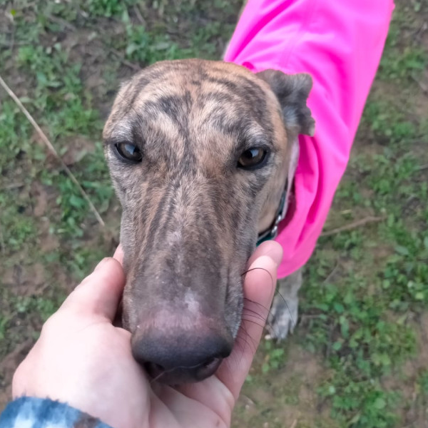 Roxie vivía atada a una cadena, aún así es una galga super cariñosa, muy confiada, juguetona y divertida, se lleva bien con todo el mundo. Está a tratamiento de leishmania pero ya ha recuperado peso y esperamos que pronto negativice y pueda llevar una vida sin medicación. Aunque sea encantador tenerla en el refugio, nos gustaría que pronto llegara el hogar que merece.