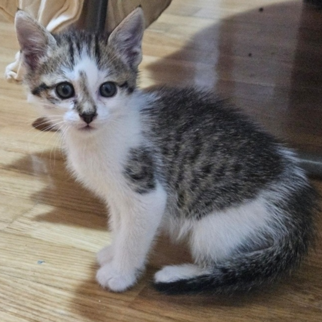 MINIE: gata de un mes y medio, hermana de Kala. Llevan una semana con nosotros y ya juegan, comen, van al arenero... son muy pequeñas, pero ya están preparadas para irse a su nuevo hogar.
