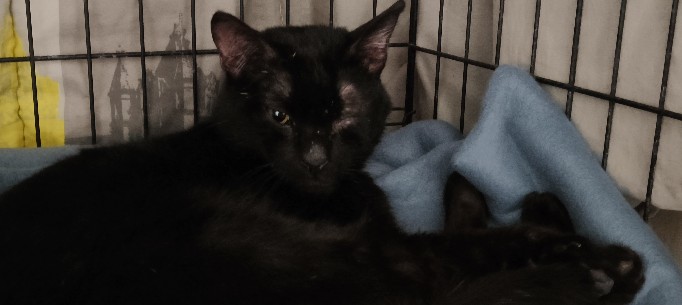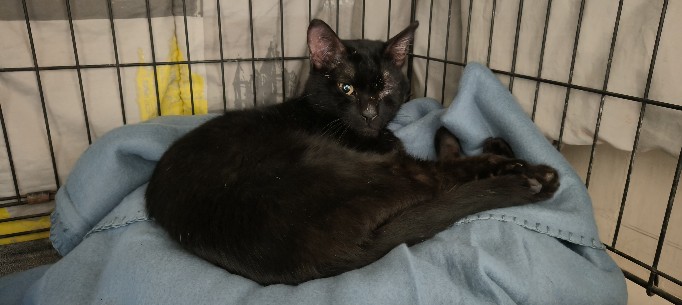 Me recogieron porque iba detrás de todo el mundo pidiendo comida y mimos y como veis en la foto tenía un ojito mal y además cojeaba de una de mis patitas. Ya estoy casi totalmente recuperado, la chicas dicen que creen que fue un golpe o una caida, pero por suerte no me ha afectado y me estoy poniendo fuerte y guapo para mi futura familia.