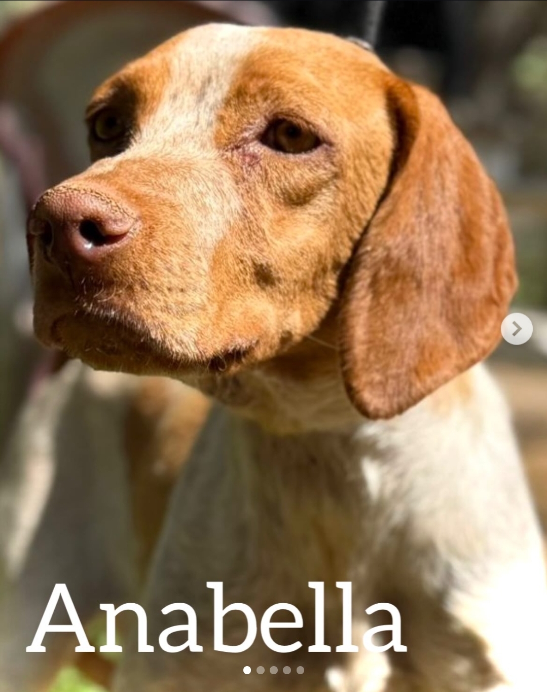 Anabella es una perrita cariñosa y dulce, con una mirada que enamora. Al principio puede mostrarse algo tímida, pero en cuanto le das un poco de tiempo y paciencia, coge confianza y saca su lado más amoroso. Es muy buena, le gusta el cariño y se deja manipular sin problema. Además, parece activa, así que disfrutará tanto de paseos como de momentos tranquilos en casa junto a su familia. Anabella solo necesita una oportunidad para demostrar lo especial que es. ¿Le abres la puerta de tu hogar y de tu corazón? Si quieres conocerla o darle una oportunidad, rellena el formulario de adopción.