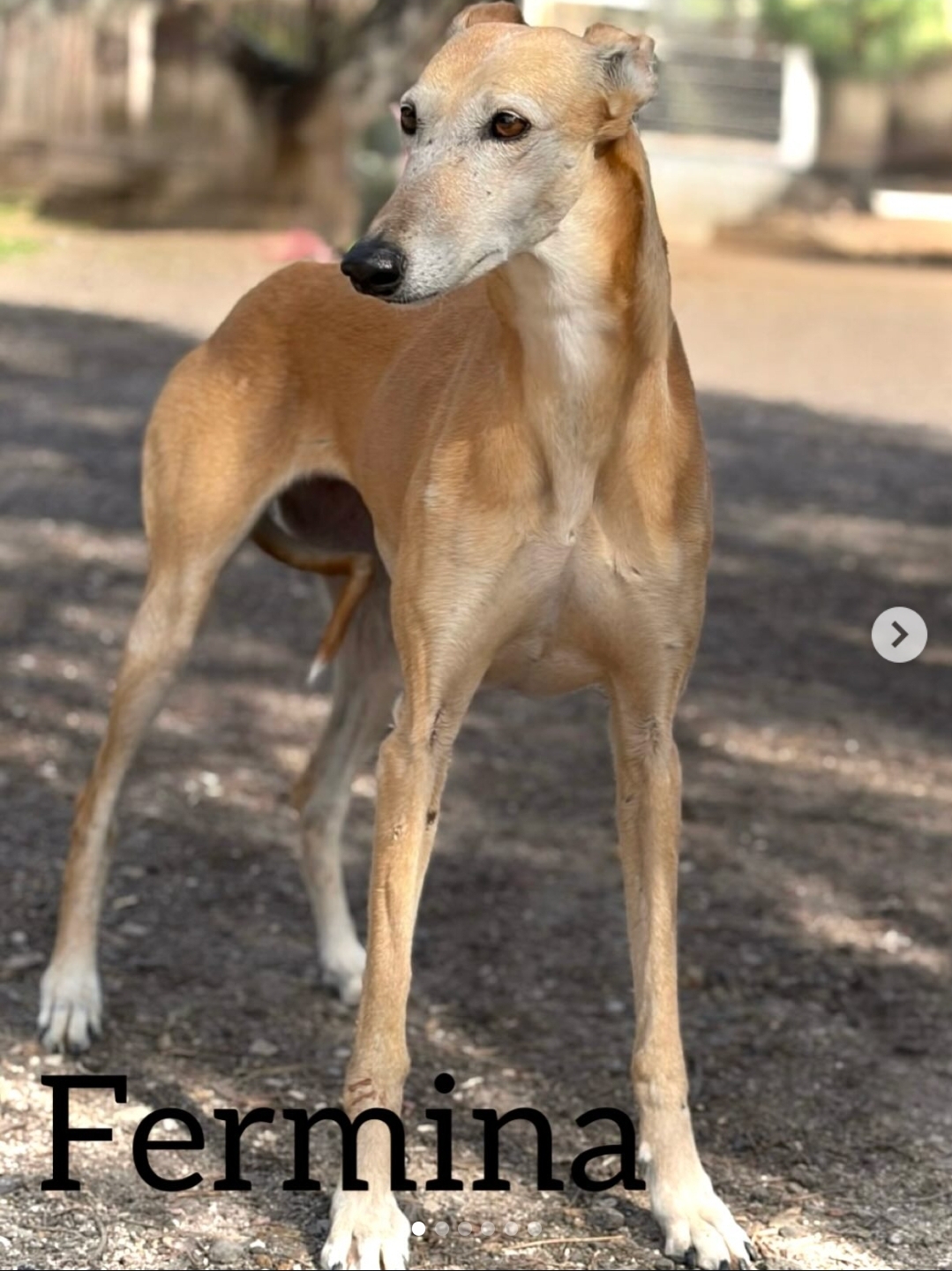 Os presentamos a Fermina, una preciosa galguita que está esperando una oportunidad para conocer lo que es un verdadero hogar. Fermina es una perrita tímida e insegura al principio, pero con un poquito de paciencia y cariño empieza a confiar y a mostrarse tal y como es: dulce y tranquila. Convive perfectamente con otros perros y no tiene problemas con ellos. Se deja manipular sin dificultad, pasea bien con correa y disfruta de la calma en un entorno donde se siente segura. Es ideal para una familia que respete sus tiempos y le ofrezca estabilidad y amor. Fermina solo necesita alguien que crea en ella y le enseñe que la vida también puede ser bonita. Si quieres darle una oportunidad o saber más sobre ella, rellena el formulario de preadopción. Comparte para que Fermina encuentre su hogar definitivo.