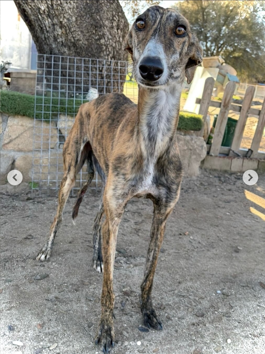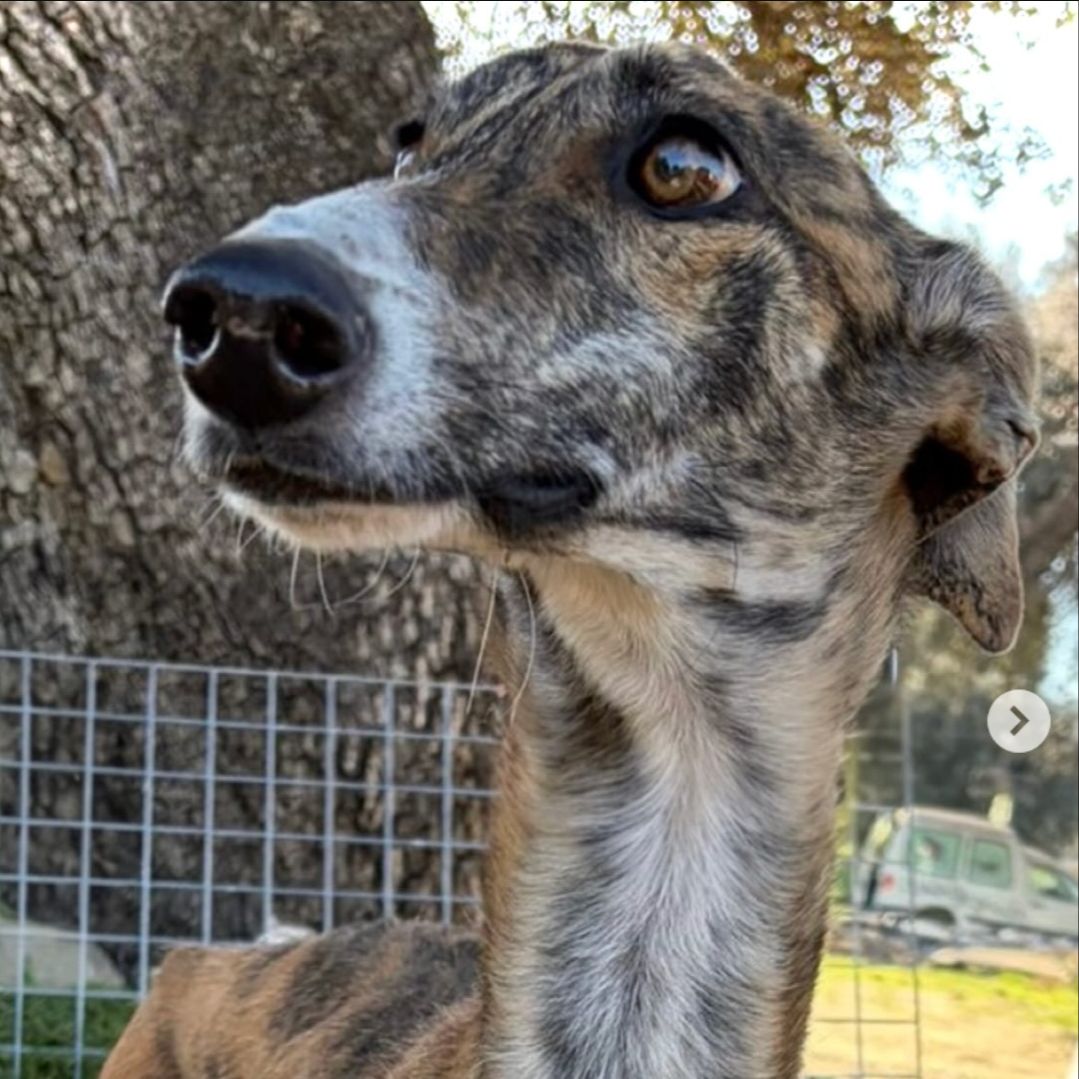 Miel es una galguita muy dulce, buena y cariñosa, con un carácter tranquilo que enamora. Es una perrita equilibrada, sin problemas de convivencia, que se lleva estupendamente tanto con otros perros como con las personas. Le encantan los mimos y el contacto humano, disfruta de los momentos de calma y de sentirse acompañada. Es muy tranquila, ideal para un hogar donde se valore la serenidad y el cariño compartido. Además, camina muy bien con correa, lo que hace que los paseos con ella sean agradables y relajados. Miel es esa compañera fiel y amorosa que solo espera una oportunidad para formar parte de una familia y dar todo el amor que lleva dentro.