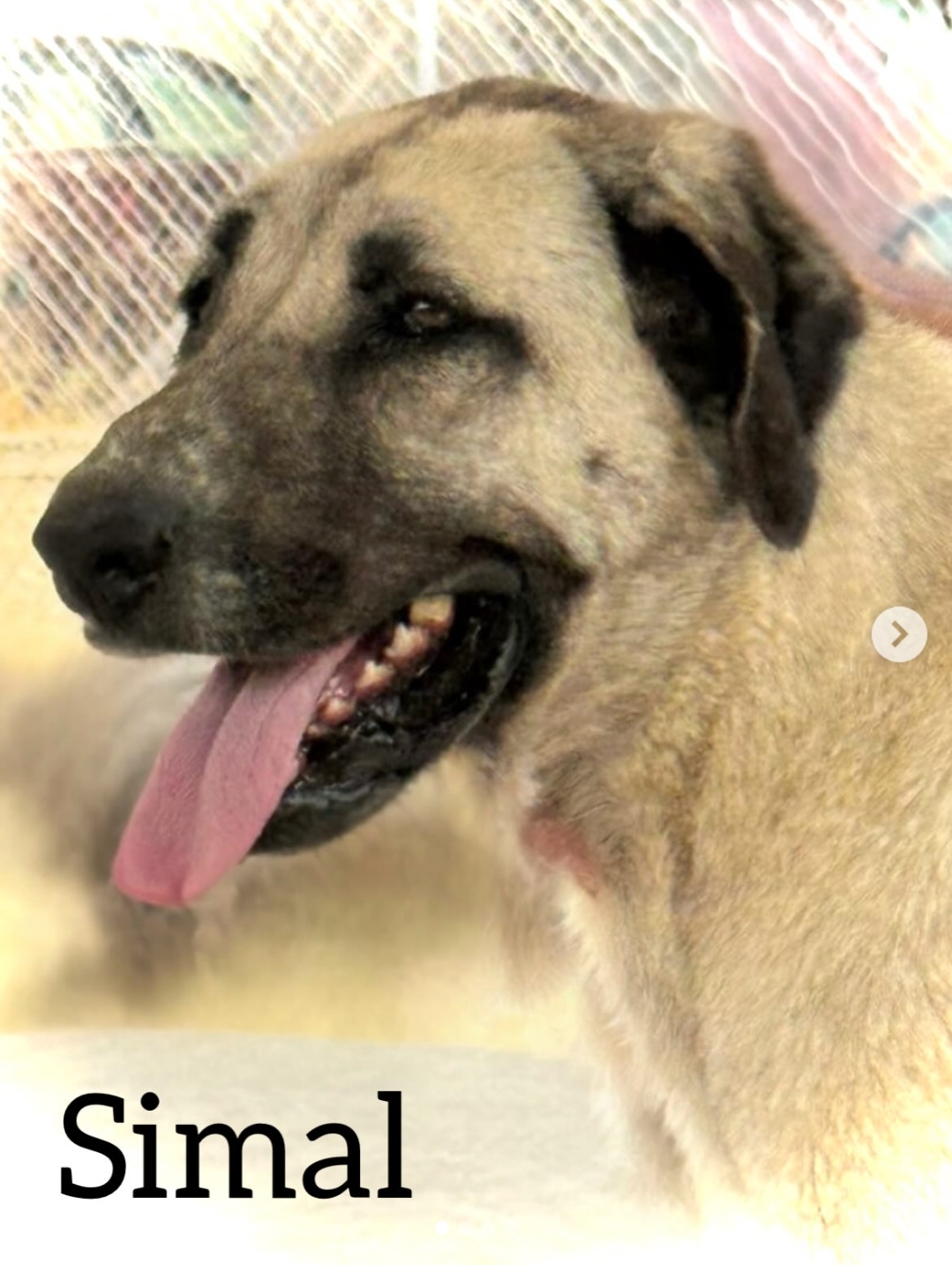 Simal es una perrita muy especial que solo necesita un poquito de tiempo para mostrar lo maravillosa que es. Al principio puede parecer algo desconfiada con las personas, pero en cuanto coge confianza —y lo hace rápido— se transforma en una auténtica amante de los mimos. Es muy cariñosa, le encanta dar besos y disfrutar de la compañía humana. Con otros perros convive sin problemas: vive suelta con ellos, juega y comparte el día a día con normalidad. Eso sí, como muchos perros, valora su espacio personal y puede ser algo territorial con la comida, pero no presenta problemas graves ni conductas agresivas. Simal es ideal para una familia paciente y respetuosa, que entienda que el amor verdadero a veces necesita unos días para florecer… y cuando lo hace, es infinito.