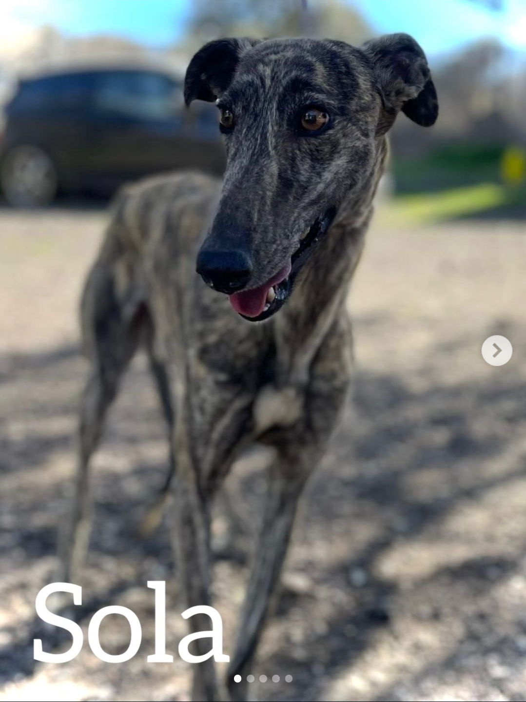 Sola es una galga que necesita una oportunidad muy especial. Es una perrita con mucho miedo, de esas que han tenido que aprender a protegerse del mundo, pero que poco a poco empieza a mostrar que, en el fondo, solo necesita seguridad y cariño. Se deja manipular sin problema y pasea bien con correa, lo que demuestra que, aunque tenga miedo, está dispuesta a confiar si se le da el tiempo necesario. Es importante entender que Sola seguirá siendo una galga miedosa, por lo que necesita una familia paciente, tranquila y respetuosa, que sepa acompañarla sin forzarla y celebrar cada pequeño avance. Con otros perros no presenta problemas de convivencia: es más bien tímida y prefiere mantenerse al margen, sin conflictos, simplemente observando y compartiendo espacio a su manera. Sola no es una perra para cualquiera, pero sí para alguien con un gran corazón y ganas de ayudarla a descubrir que el mundo también puede ser un lugar seguro. Con tiempo, comprensión y amor, Sola puede llegar a construir un vínculo muy especial con quien decida darle esa oportunidad. Si quieres cambiar una vida de verdad, Sola te está esperando.