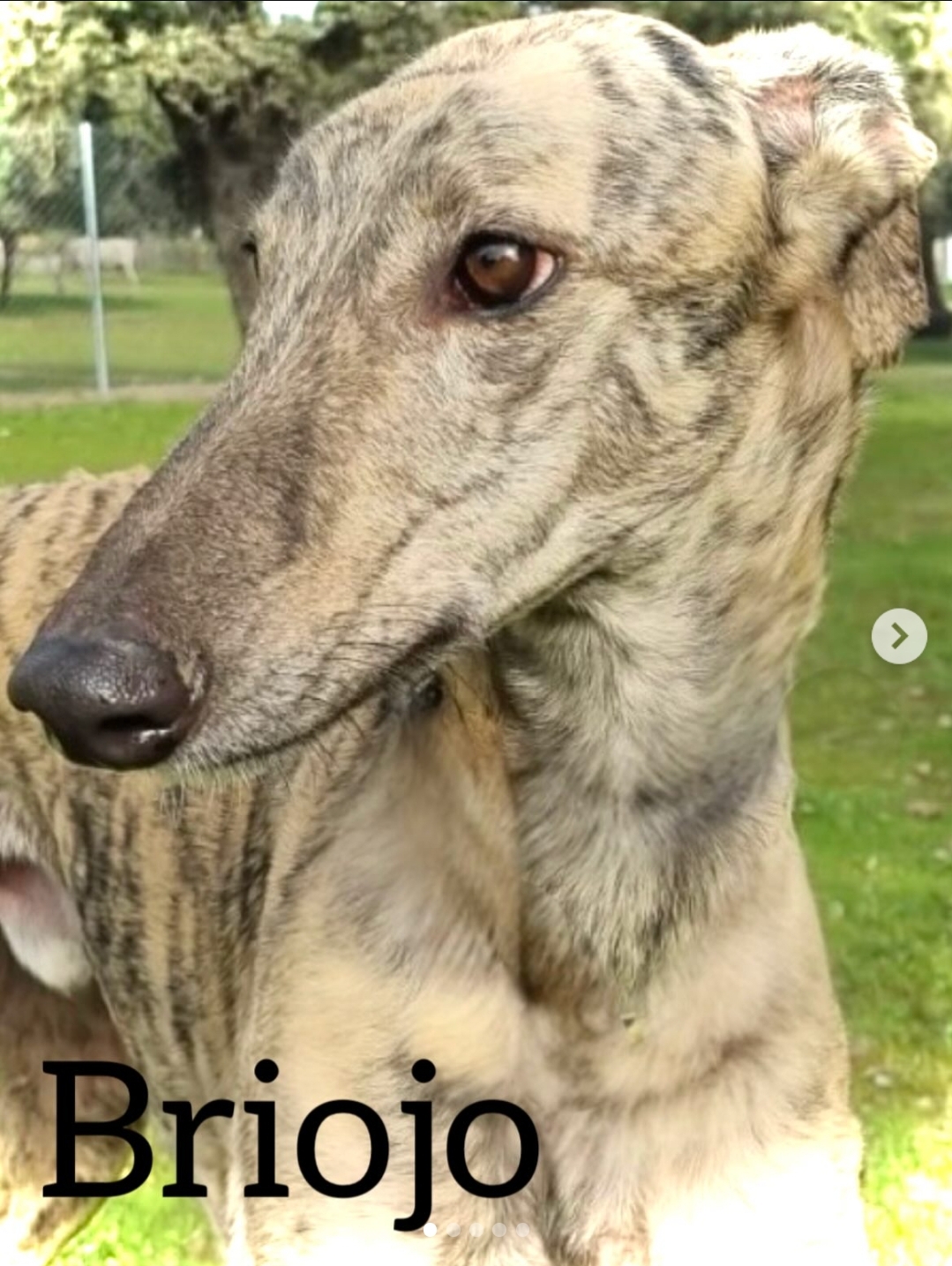 Briojo es un galgo XL impresionante, de esos que no pasan desapercibidos. Su porte elegante y su mirada profunda hacen que, a simple vista, imponga respeto y admiración. Es un perro realmente guapo, con esa presencia tan especial que caracteriza a los grandes galgos. Recién abandonado, aún muestra un poquito de timidez cuando lo manipulan. Es algo totalmente normal después de lo que ha vivido. Necesita unos días para comprender que ahora está a salvo, que las manos que se acercan son para acariciar y no para hacer daño. Con paciencia, cariño y rutina, estamos seguros de que irá ganando confianza y mostrará su verdadero carácter. A pesar de su tamaño y su porte imponente, Briojo convive sin problema con otros perros. Se relaciona bien, es equilibrado y sabe compartir espacio. Además, va muy bien con correa, pasea tranquilo y atento, disfrutando de cada momento fuera. Briojo es un diamante en bruto: un galgo noble, sensible y con un enorme potencial para convertirse en el compañero fiel y elegante que cualquiera soñaría tener. Solo necesita tiempo, amor y una oportunidad para volver a brillar. Un dato a tener en cuenta es que es escapista por lo que habría que adoptar las medidas oportunas para evitar situaciones indeseadas.