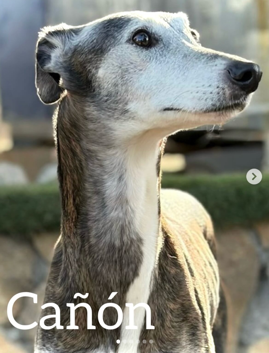 Cañón no es el típico galgo que te conquista a primera vista con saltos y fiestas interminables. Él es más bien de miradas profundas y silencios largos. Es un perro serio, tranquilo, de esos que parecen inexpresivos… pero que guardan mucho más de lo que muestran. Con otros perros se relaciona bastante bien; entiende su lenguaje y se mueve con naturalidad entre ellos. Con las personas, en cambio, le cuesta un poquito más abrirse. Lleva más de un mes con nosotros y es ahora cuando empieza a regalarnos pequeños gestos que lo dicen todo: me ve, le hablo, y mueve el rabito con timidez. Se alegra. Y aunque sea discreto, ese movimiento significa muchísimo. Ha estado bastante malito, y quizá eso haya influido en su manera de ser. Cuando el cuerpo no acompaña, el alma también se protege. Aun así, Cañón nunca se aparta si le das cariño. No busca atención desesperadamente, no exige, no invade… simplemente está. Y si te acercas con calma, se queda. Recibe el cariño en silencio, con esa dignidad tan suya. Cañón no es un perro efusivo. Es un perro profundo. Necesita una familia paciente, que entienda que el amor a veces crece despacio, pero cuando lo hace, es para siempre. Si buscas un compañero tranquilo, noble y especial, alguien con quien construir un vínculo auténtico paso a paso, Cañón puede ser tu galgo. Dale tiempo. Dale hogar. Dale la oportunidad de terminar de florecer.